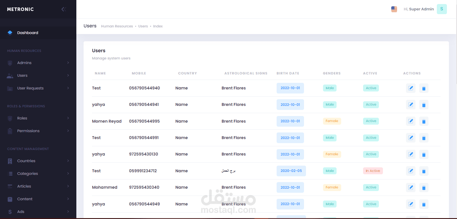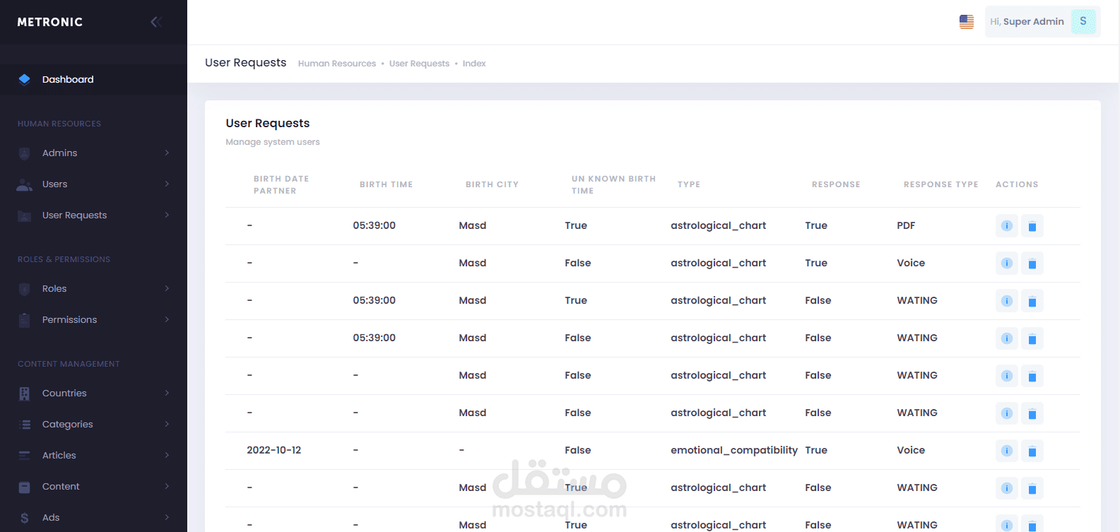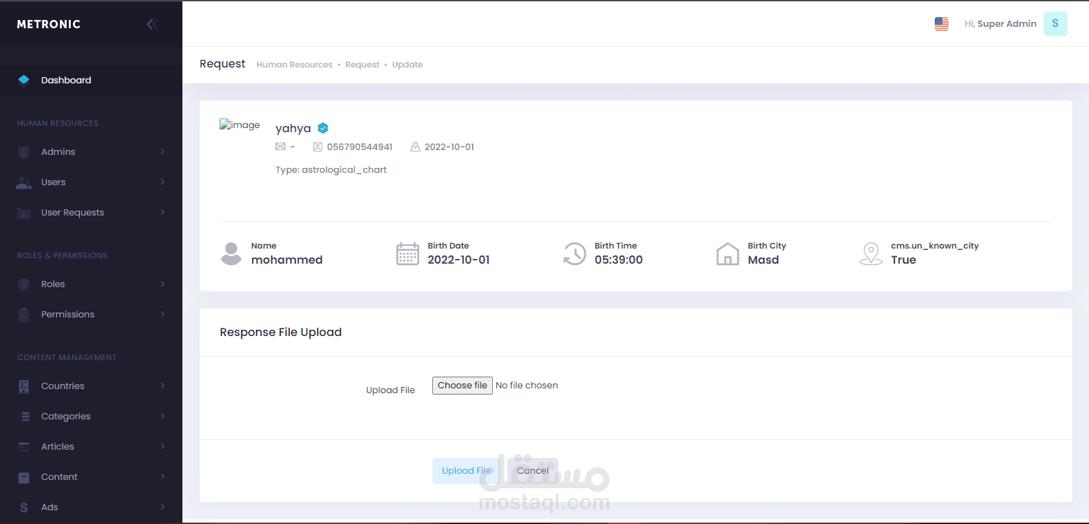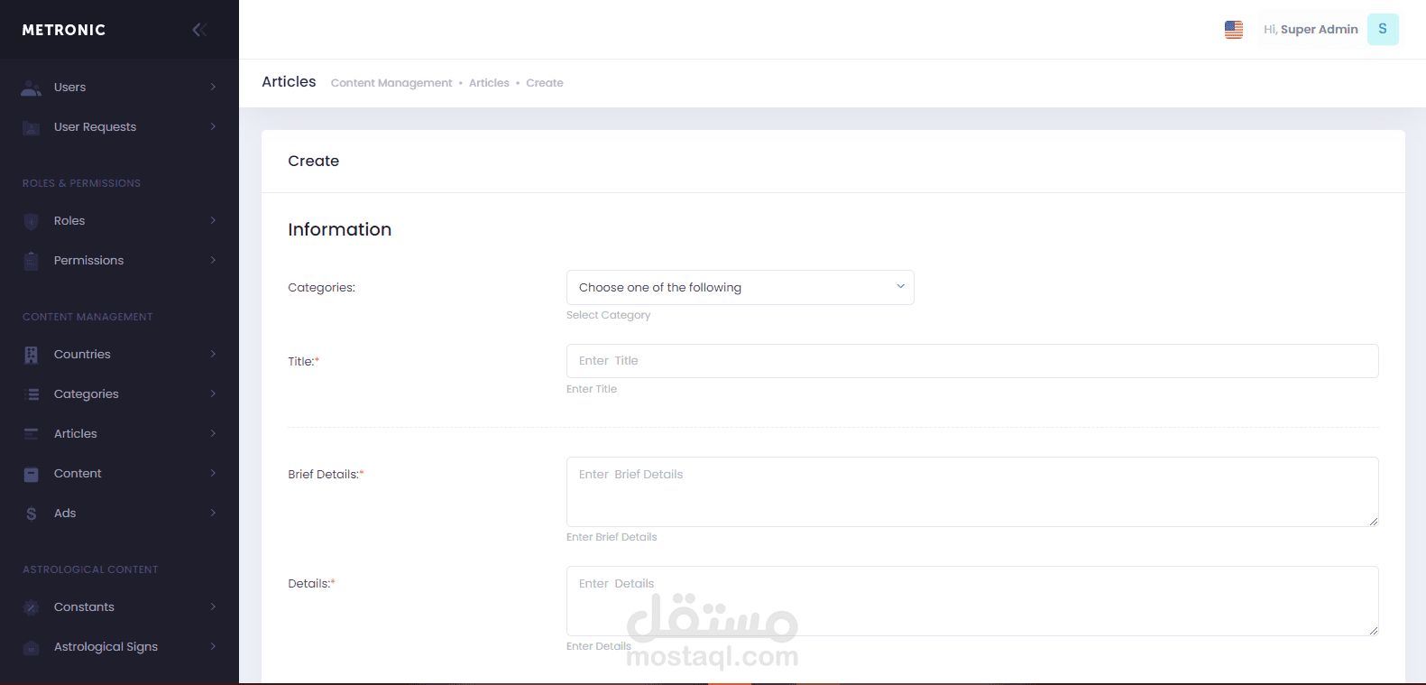 منصة أبراج , الهدف منها متابعة أبراج الفلك والتوقعات اليومية للزبون , والتحكم بتطبيق موبايل.