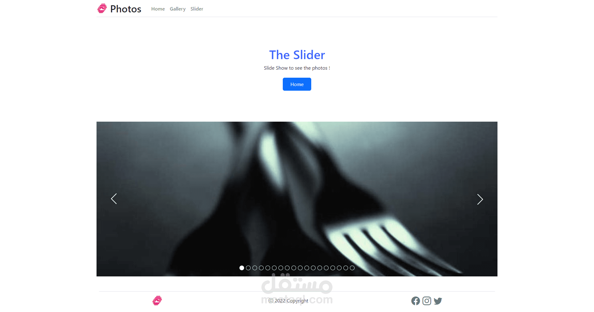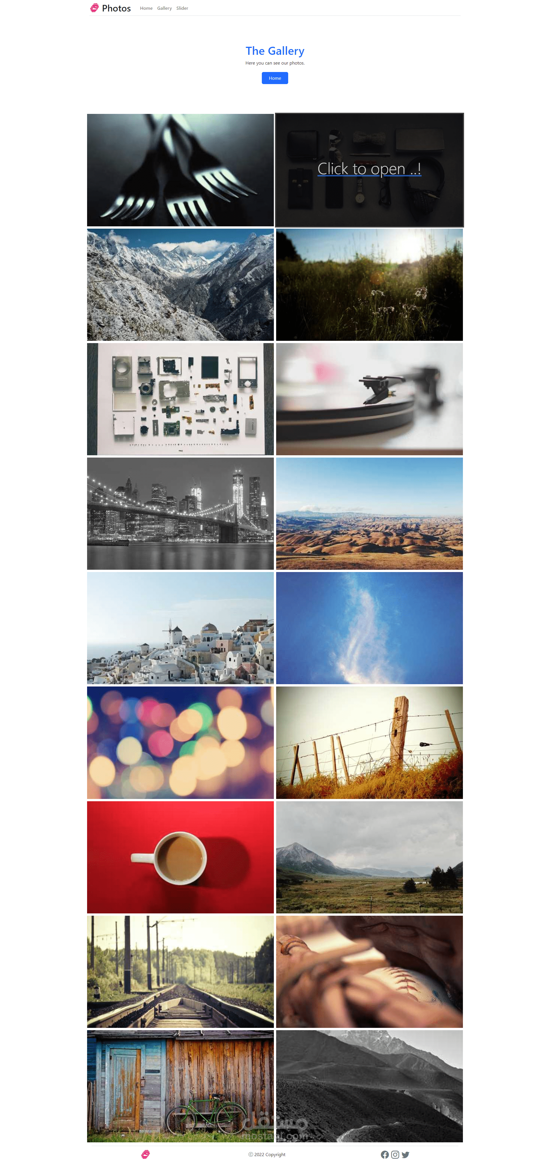 معرض صور, موقع تم تطويره عن طريق ReactJS, وتم استخدام Bootstraps للتصميم, تم العمل على هذا العمل من الصفر, وتم جلب الصور من موقع picsum.