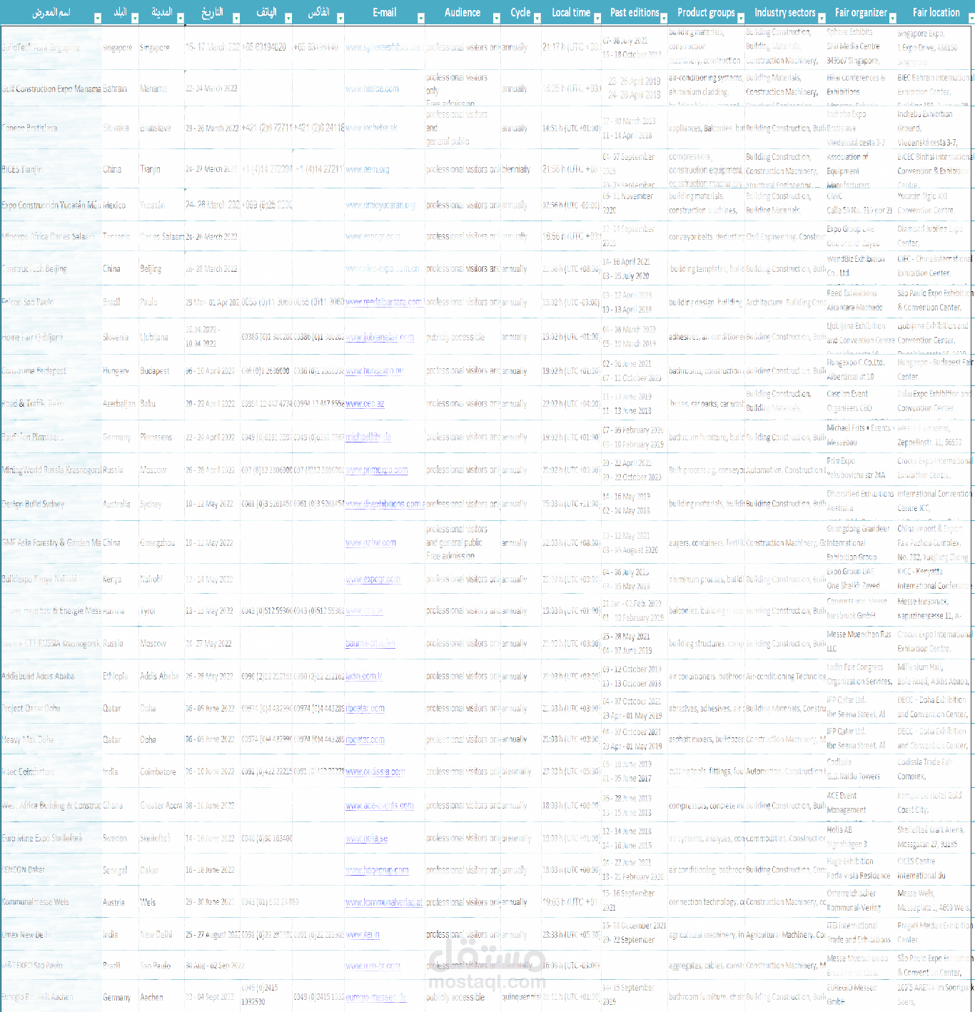 قمت في هذه الخدمة باستخراج جميع بيانات معارض من موقع خاص بالمعارض وإعادة ترتيبها وتنظيمها بدقة متناهية وسرعة ومهارة عالية واحترافية دون أي أخطاء وفي الوقت المحدد حسب رغبة العميل ثم إدخال البيانات في جدول لملف الاكسيل باللغة الإنجليزية يدويا (بدون استخدام أي برنامج).
