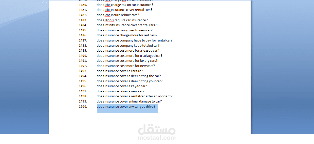 قمت في هذه الخدمة بإدخال 5000 من الأسئلة والأجوبة في موقع وتنظيمها بدقة متناهية وسرعة ومهارة عالية واحترافية دون أي أخطاء وفي الوقت المحدد حسب رغبة العميل باللغة الإنجليزية.