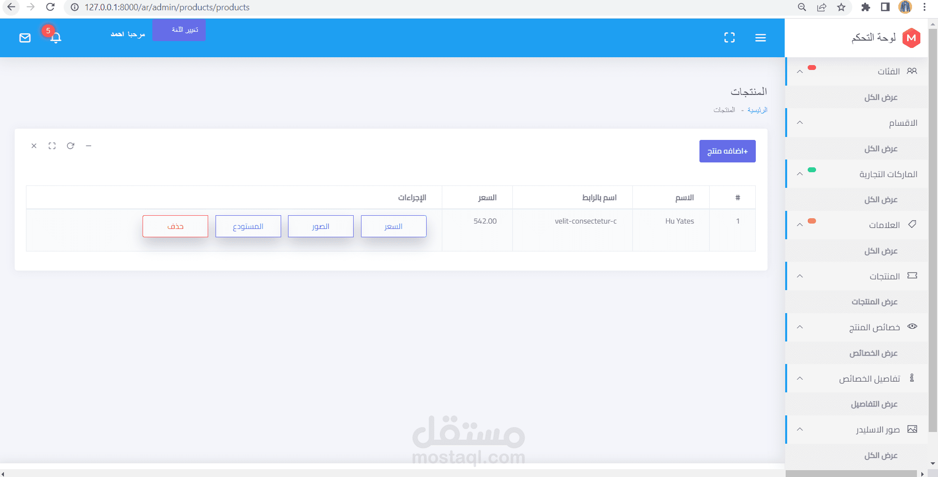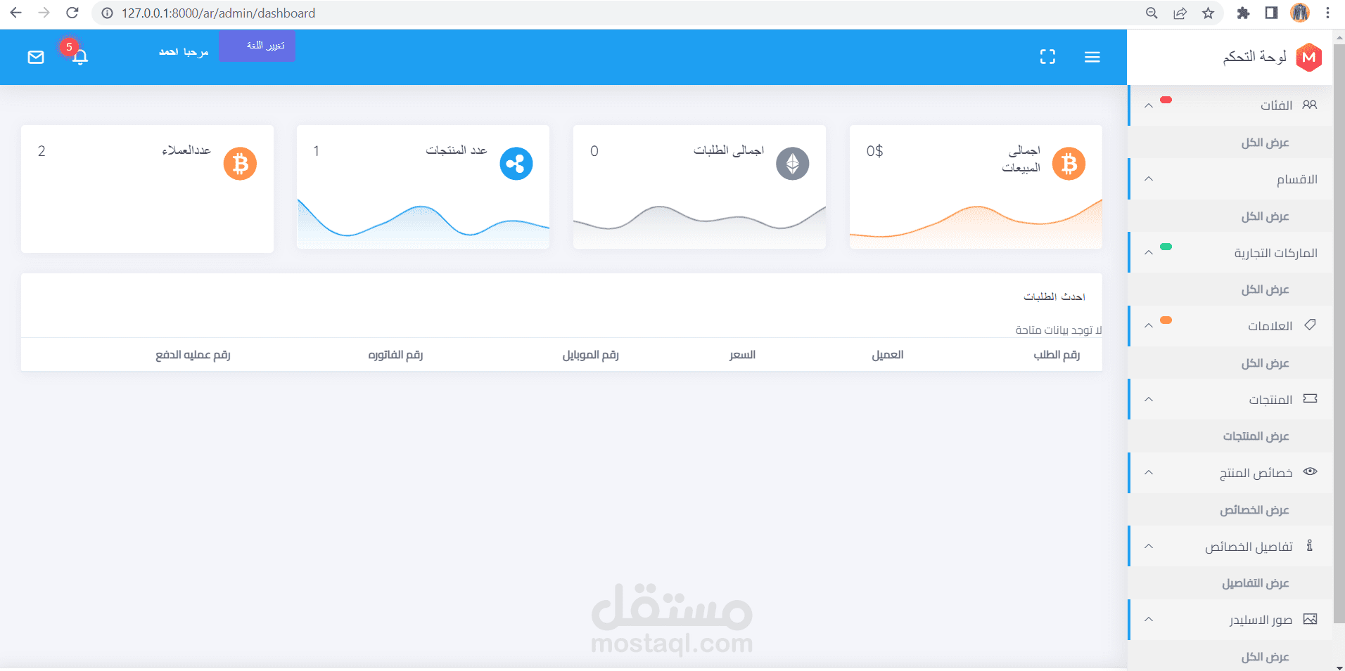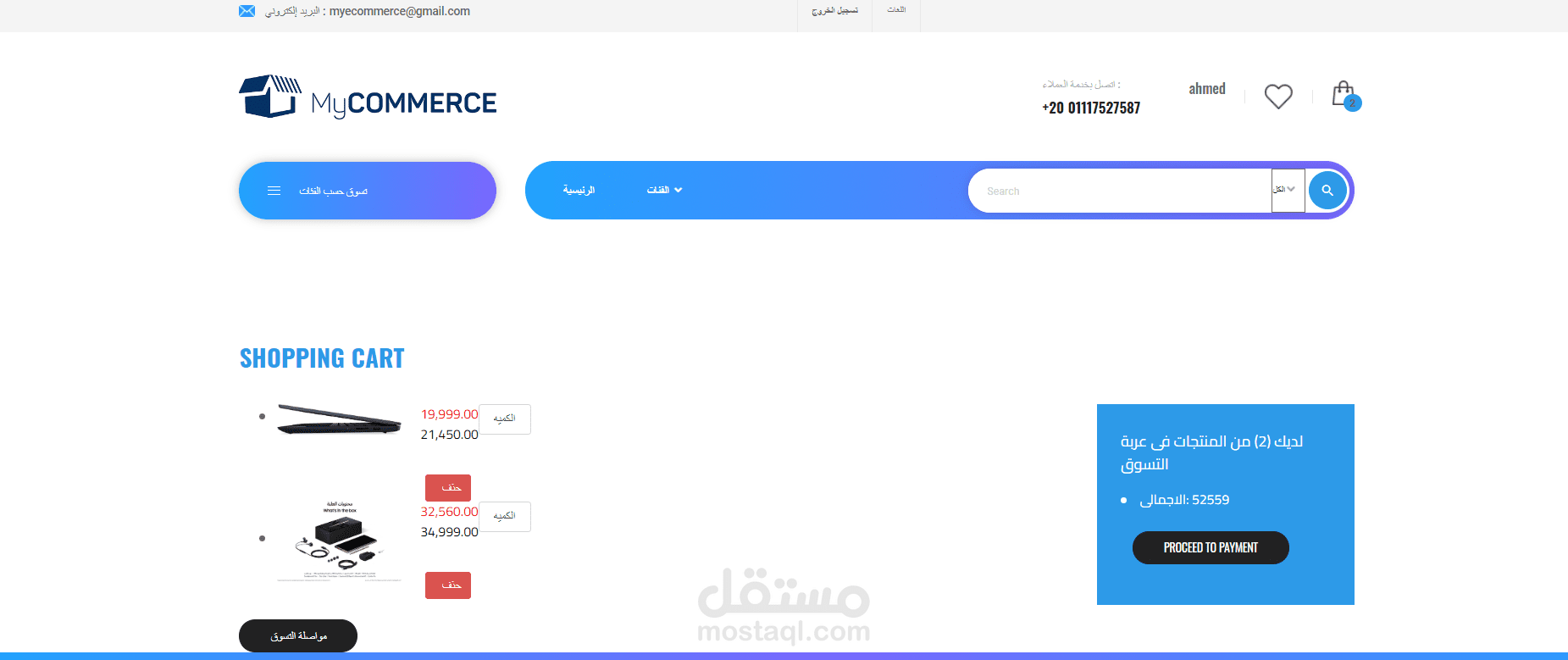 إنه موقع تجارة إلكترونية متعدد اللغات (عربي-إنجليزي) ومتعدد المصادقة (مستخدم-ادمن)