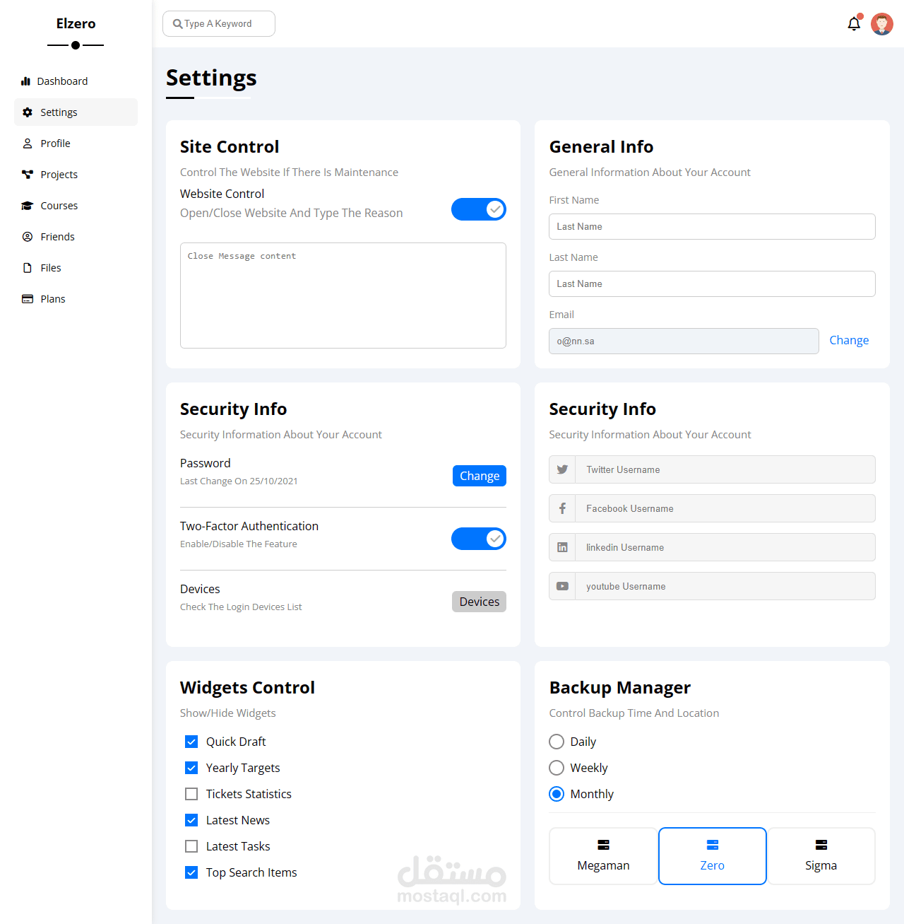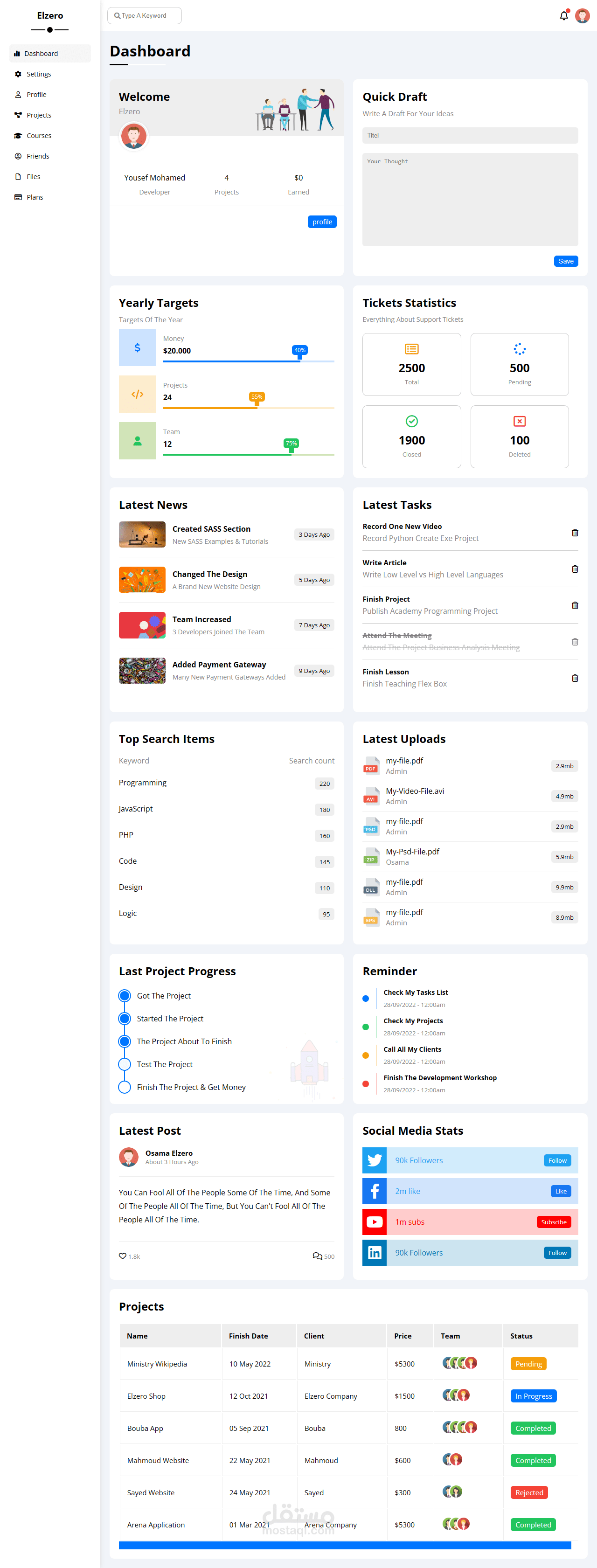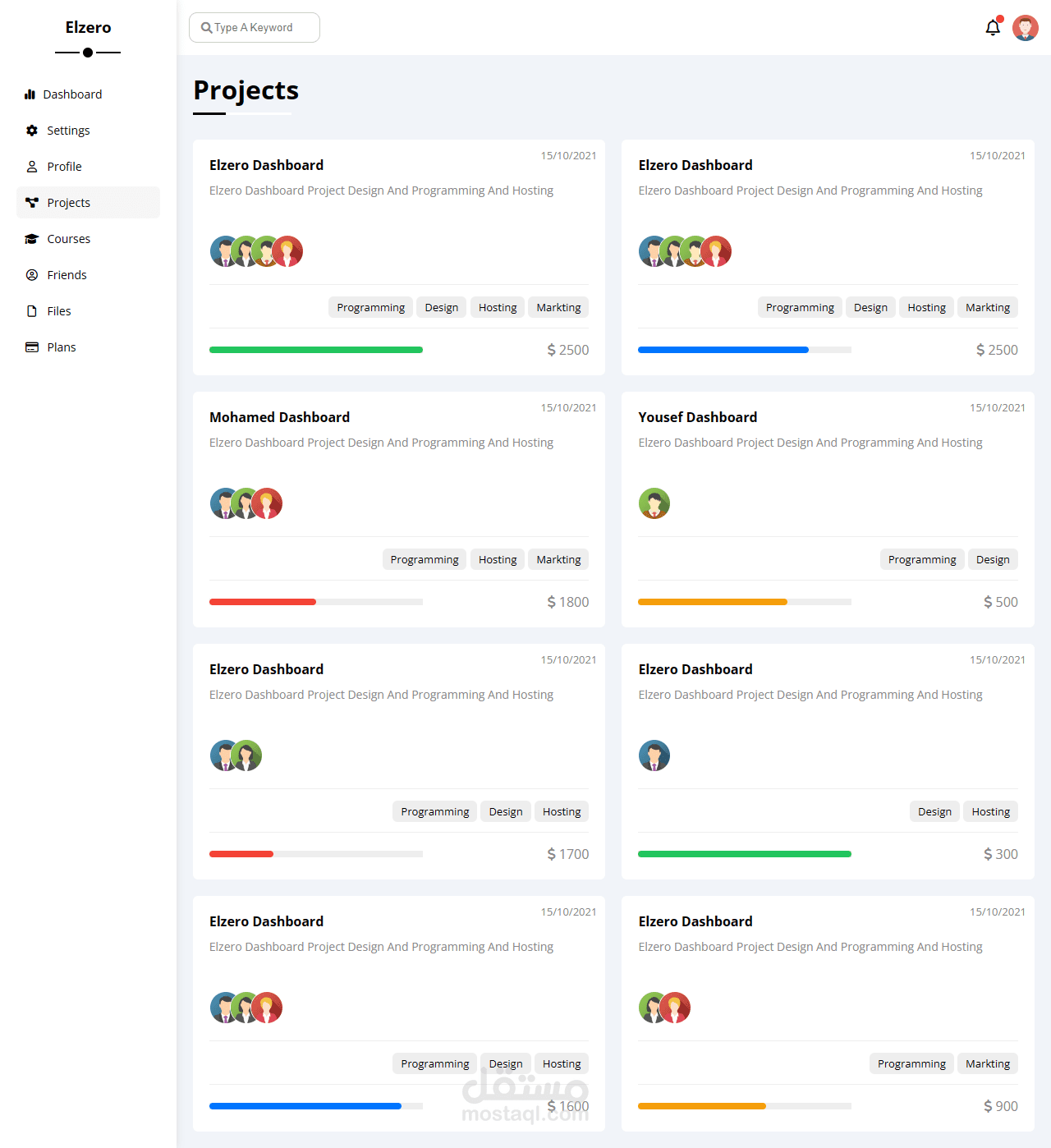 تصميم داش بورد مكون من 8 صفحات متجاوب مع الهواتف