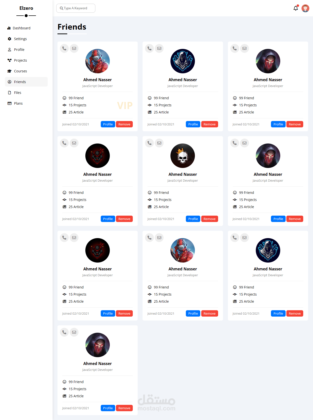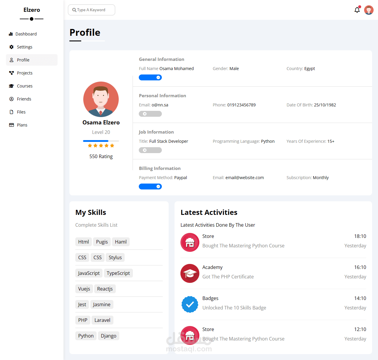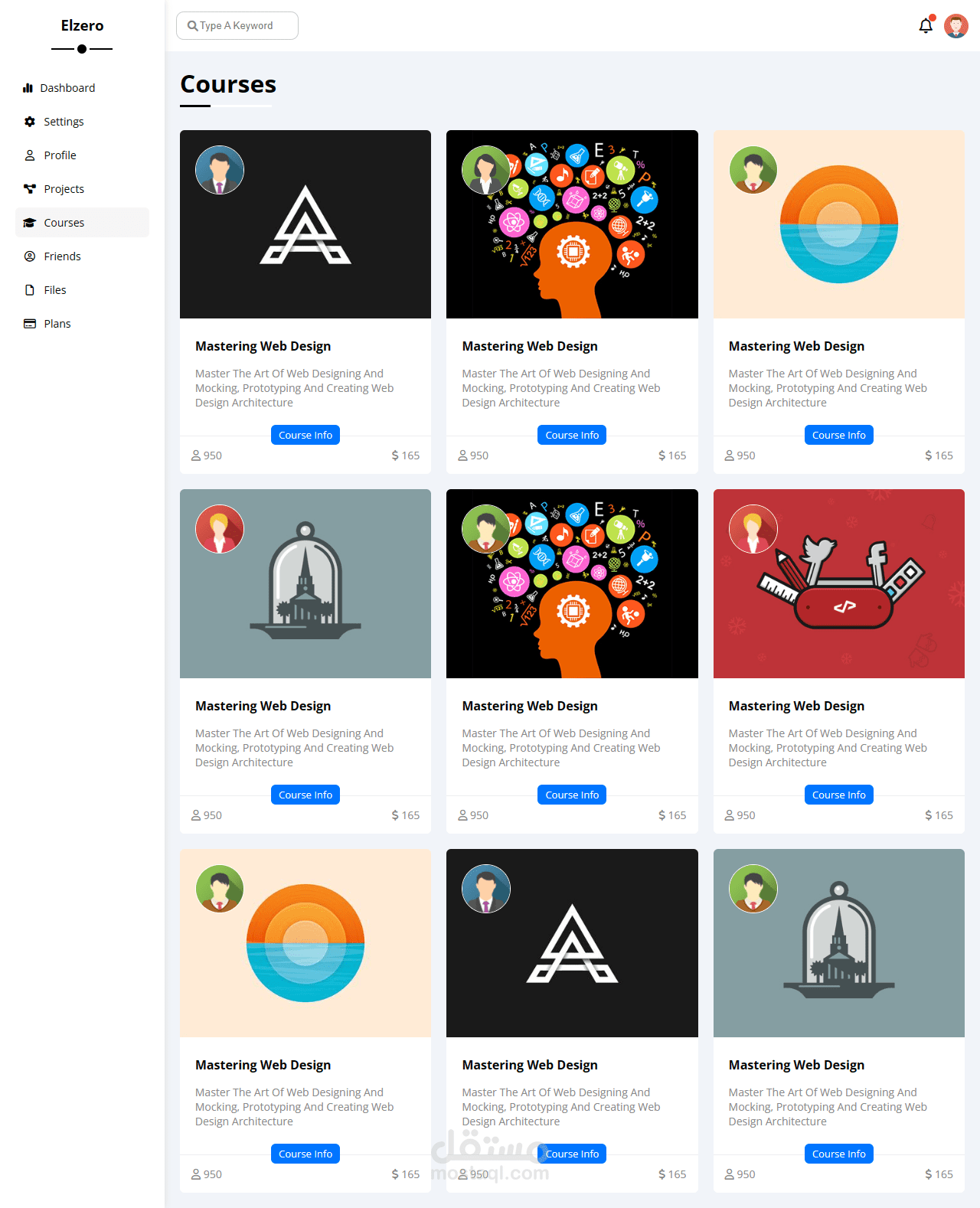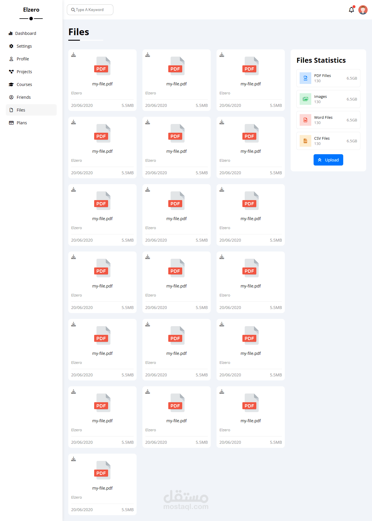 تصميم داش بورد مكون من 8 صفحات متجاوب مع الهواتف