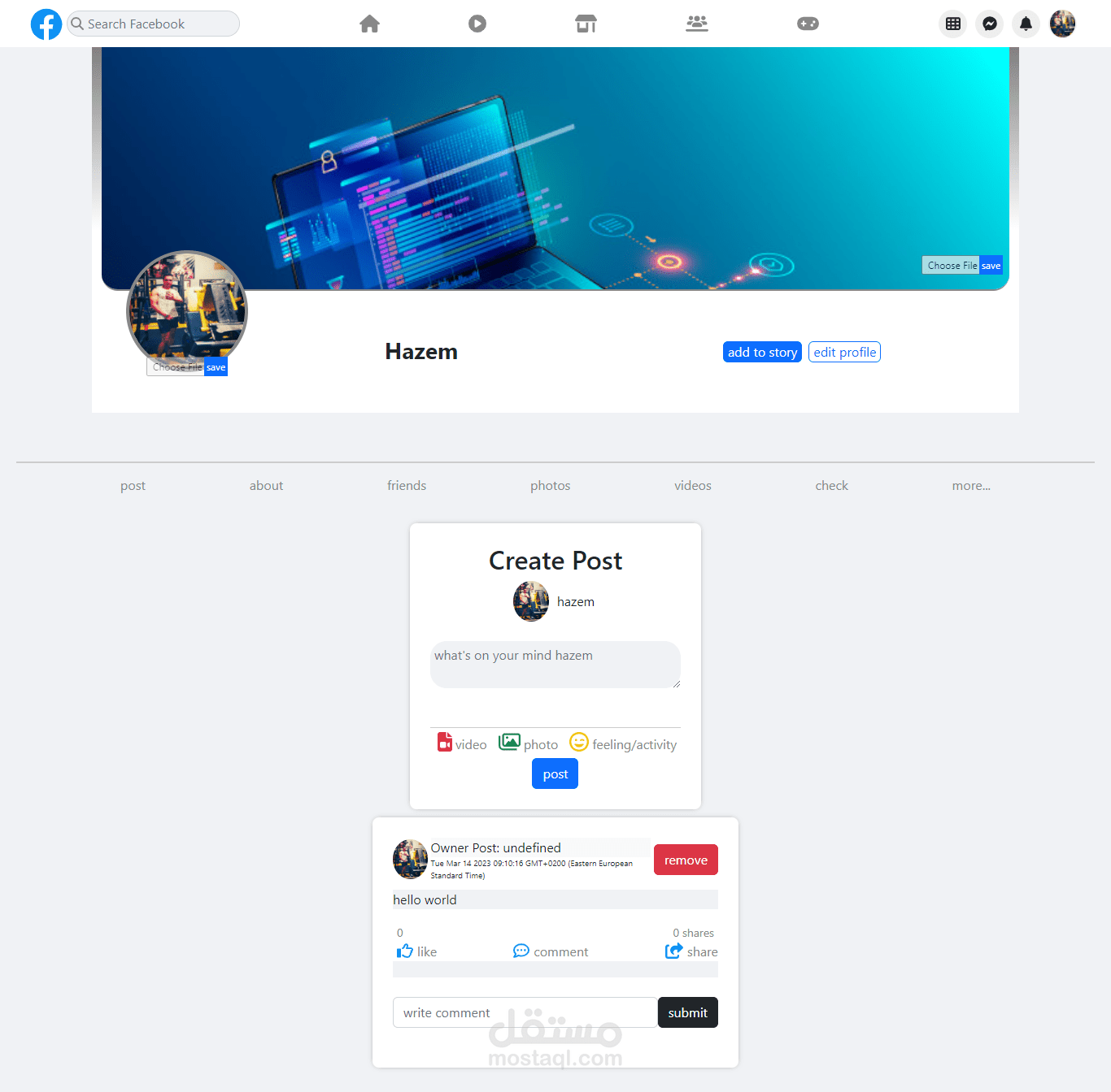 موقع للتواصل الاجتماعي يشبه الفيسبوك حيث يمكن للمستخدم انشاء بريد خاص به ومن ثم تسجيل الدخول على الموقع كما يمكن له نشر ما يرغب من المنشورات واضافة تعليق على هذه المنشورات فضلا عن امكانية تحديث بيانات المستخدم وتغير صور الغلاف الخاصة بصفحة الملف الشخصي الخاص به وتغير صورته الشخصية والمسمى الوظيفي لديه .. واخيرا هذا الموقع متجاوب مع كل الشاشات