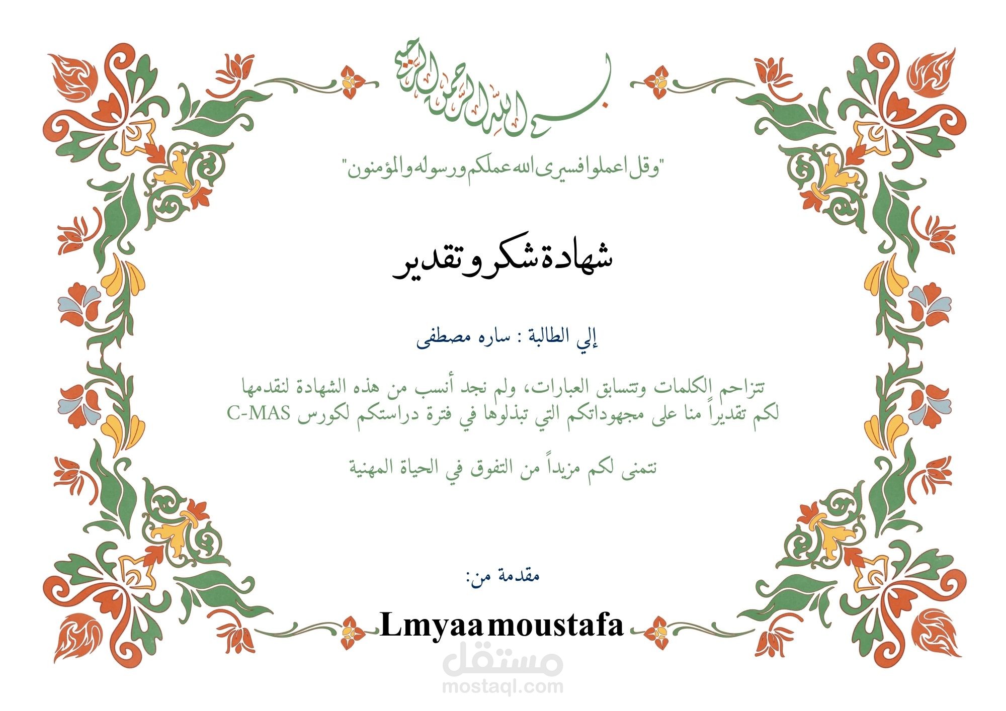 شهادات تخرج او تفوق او اعلانات
