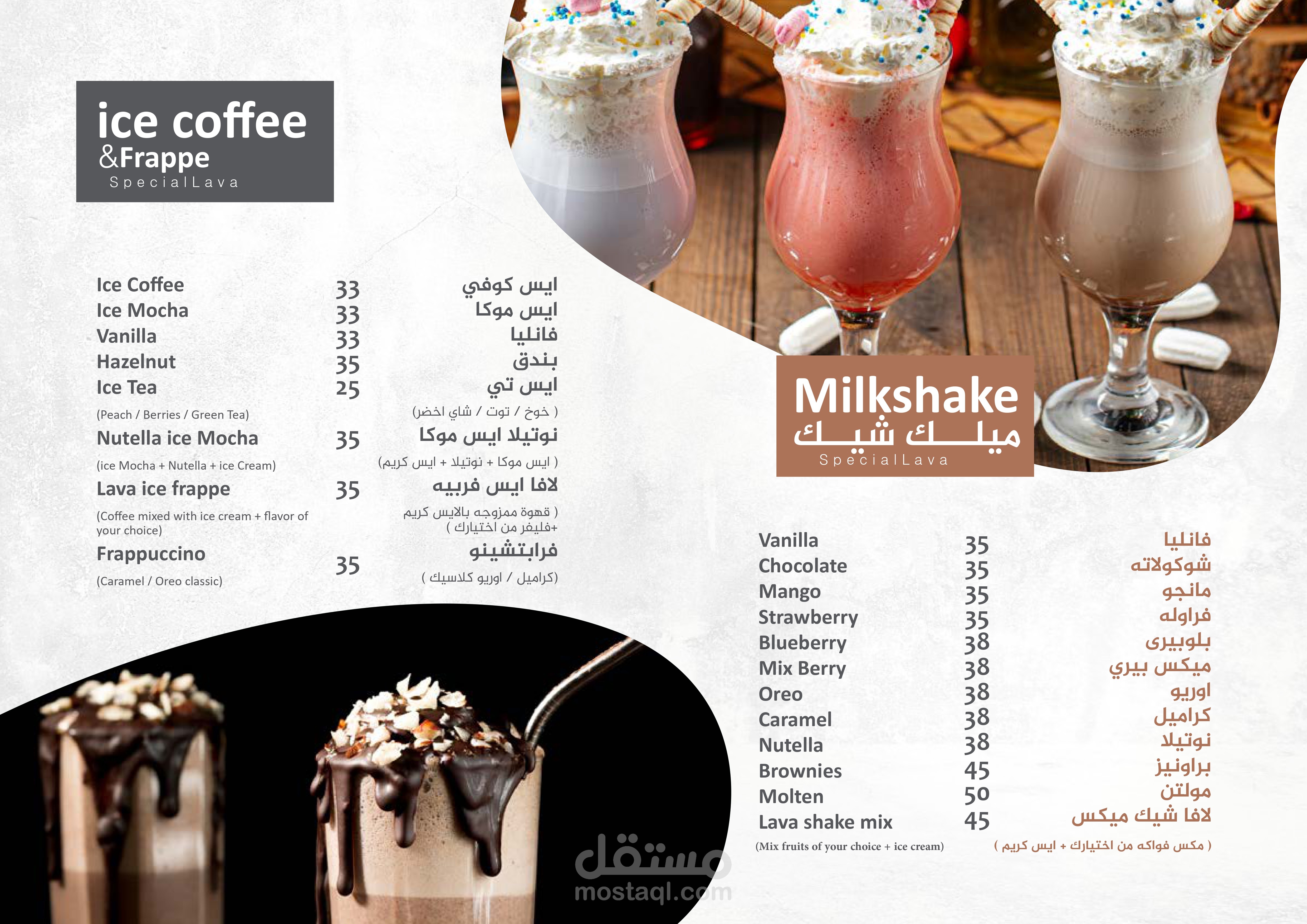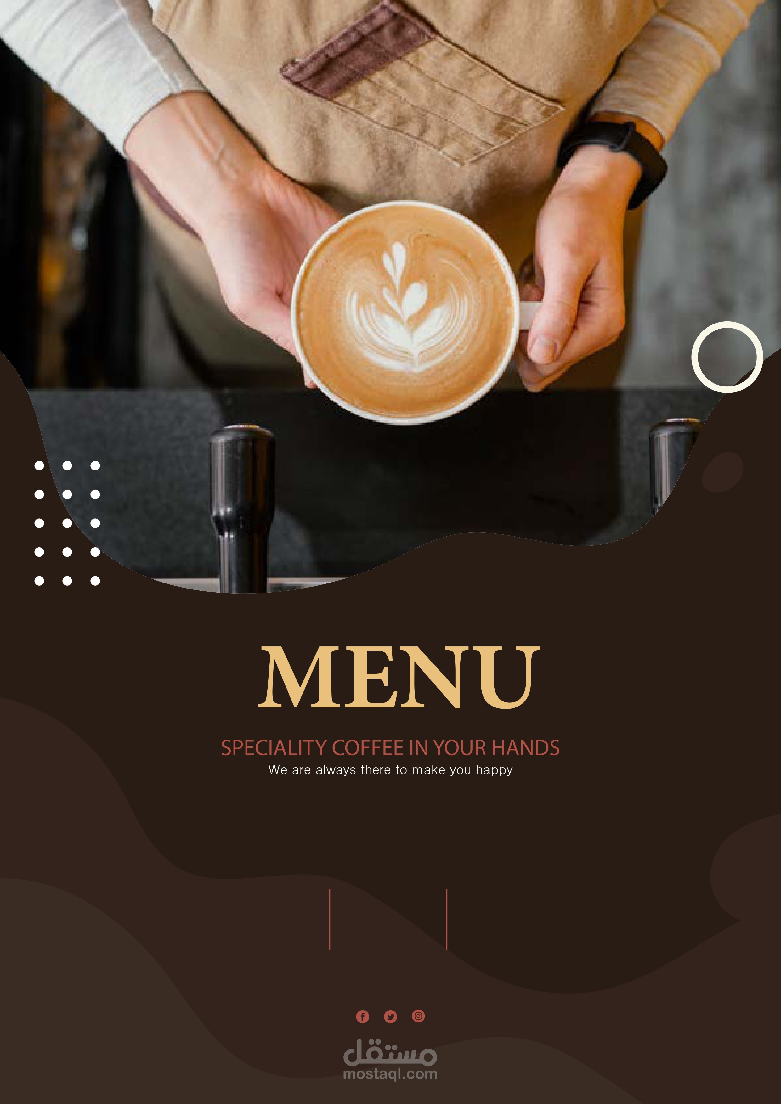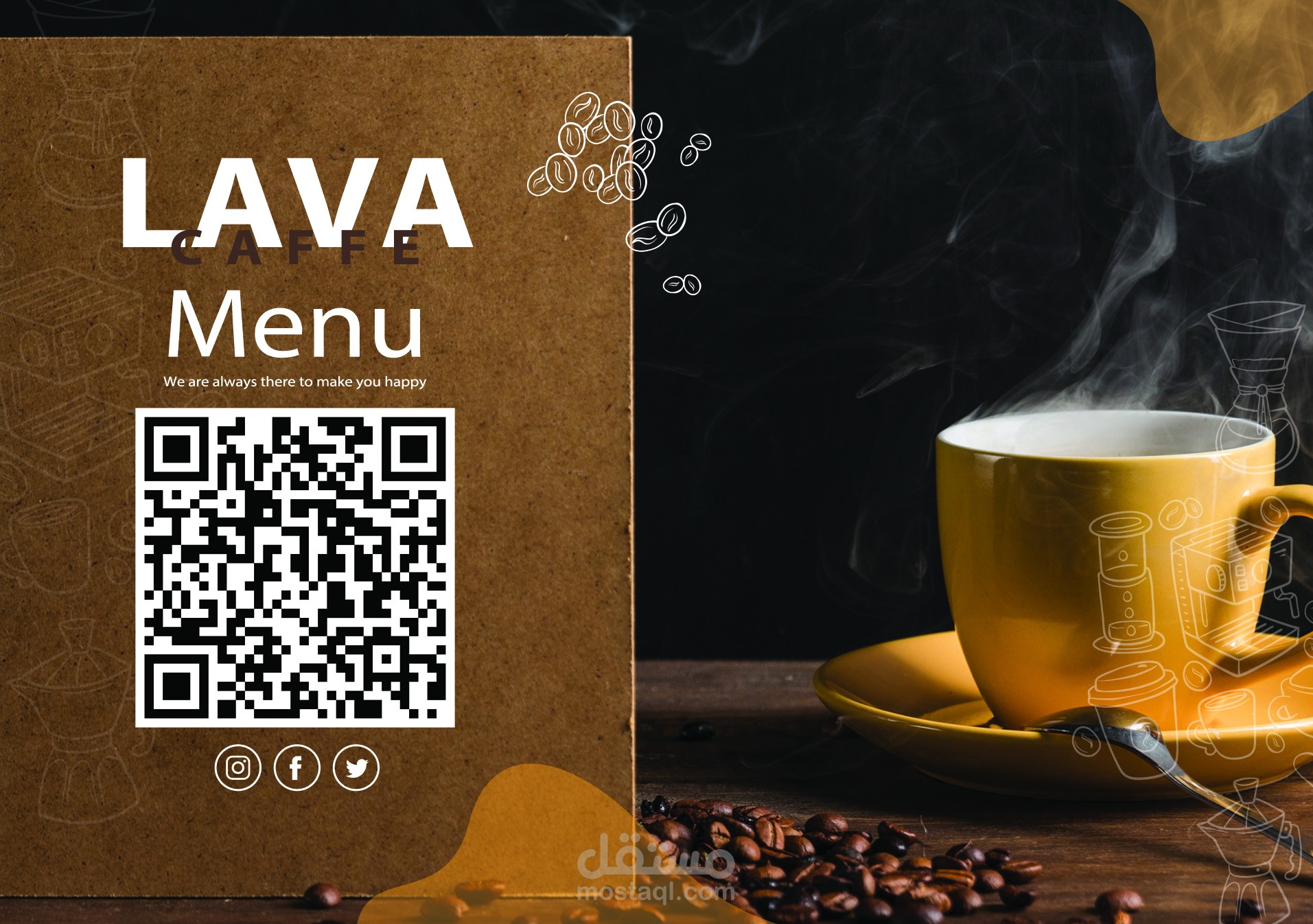 تصميم منيو كامل لكافية ( يشمل جزء تفاعلي عن طريق الوصول لموقع الكافية من خلال المنيو pdf )
