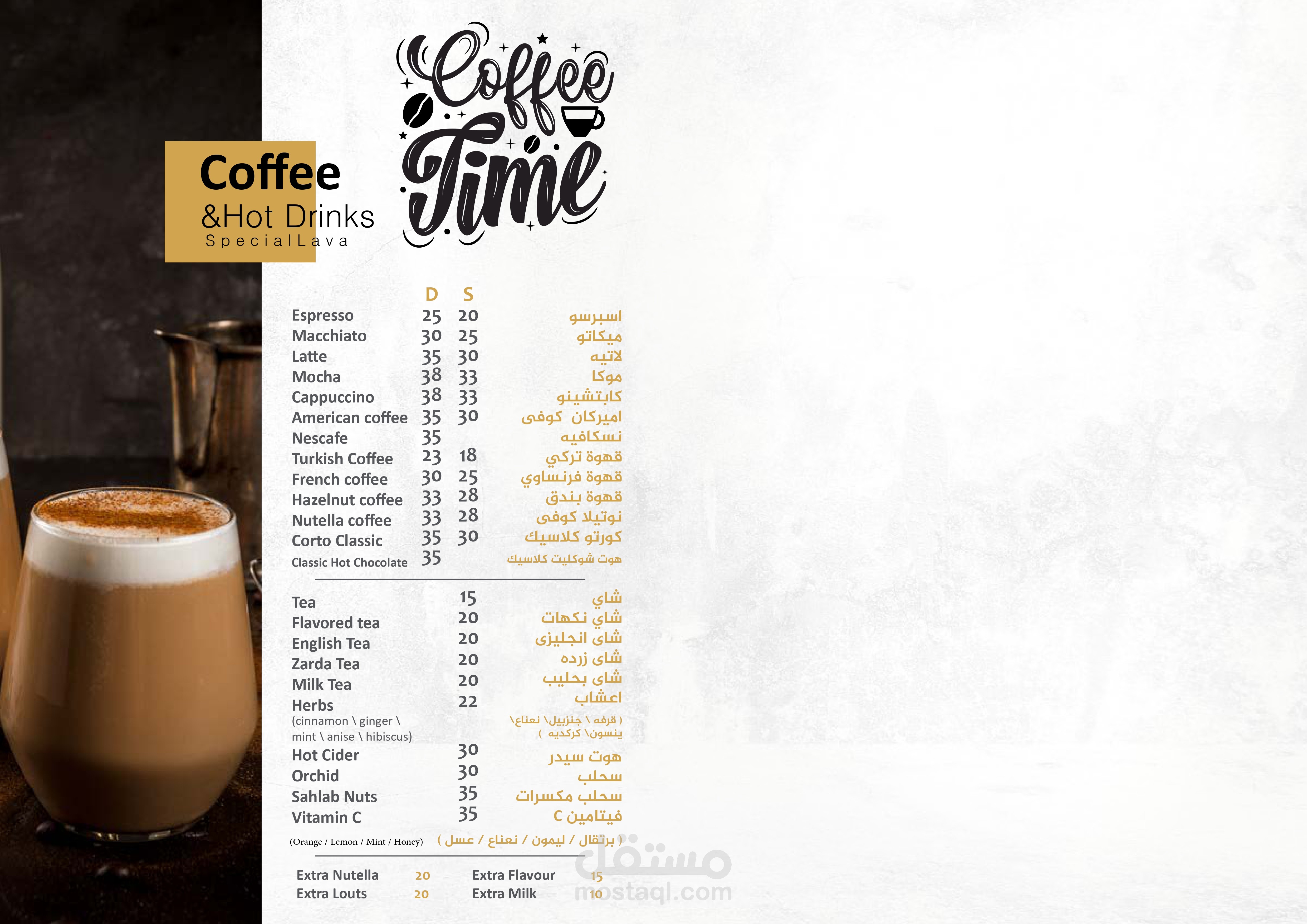 تصميم منيو لكافية