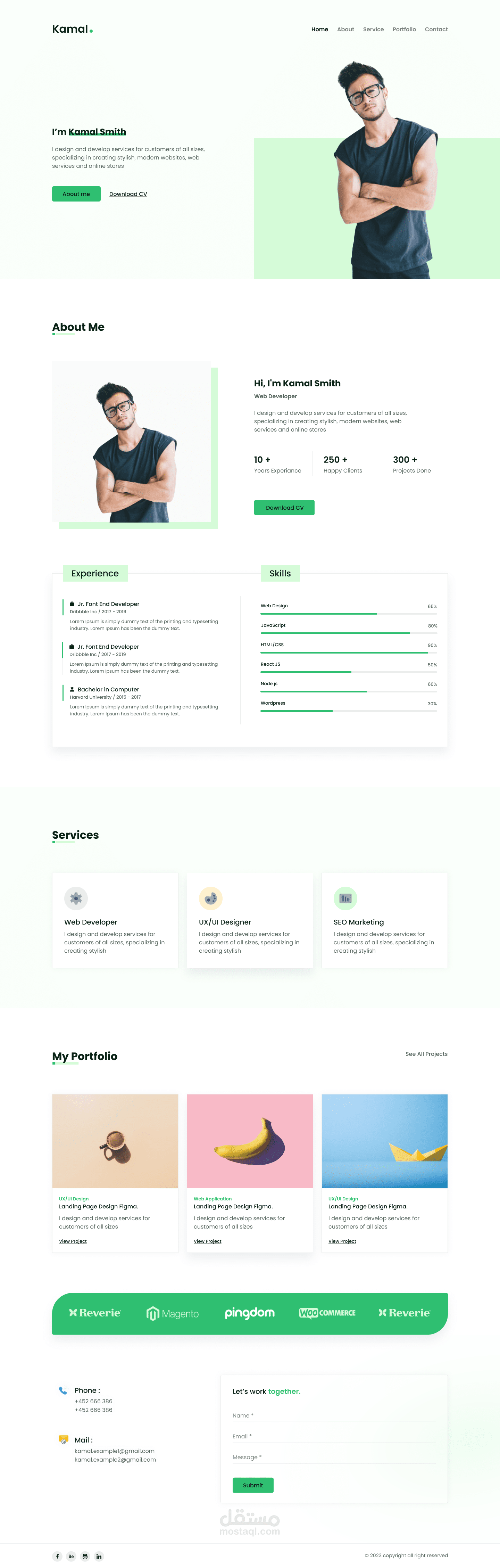 Kamal is a landing page style personal portfolio template, which is simple and creative, easy to customize and modify, and suitable for creative people.