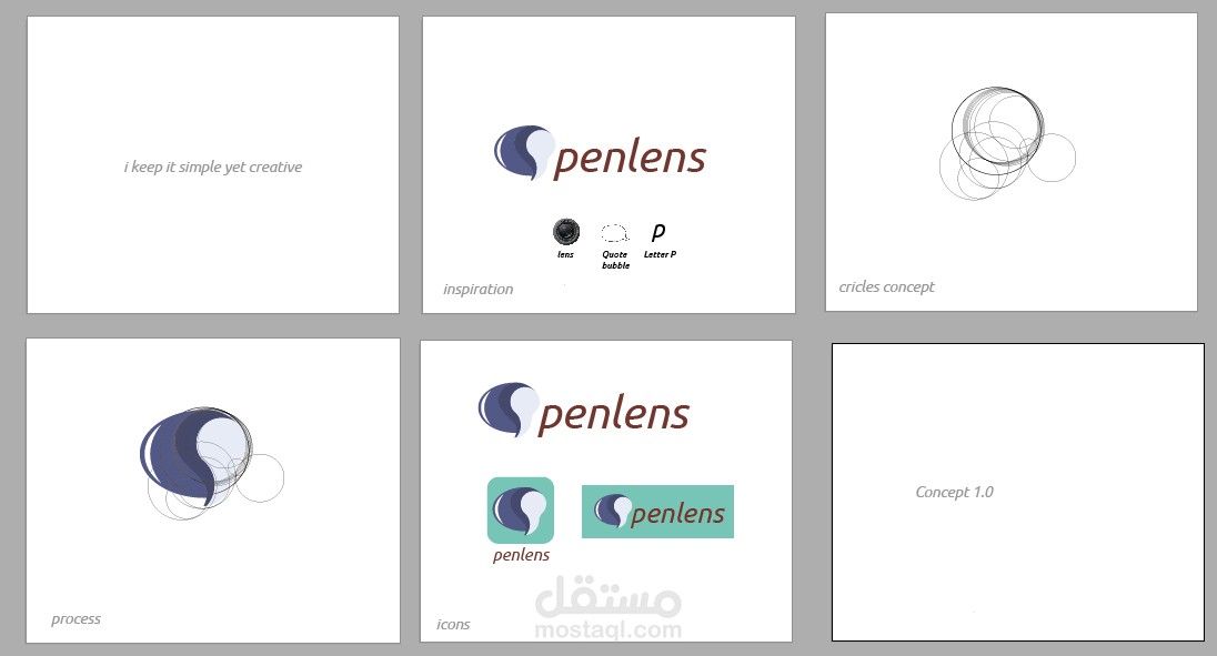 Penlens blogging app logo concept.
