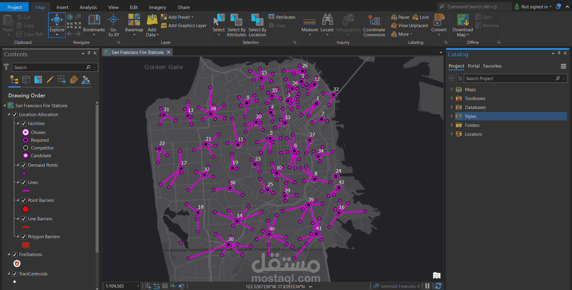 عمل network analysis لمعرفة اقرب المستشفيات و معرفة عدد محطات الاطفاء الزائدة