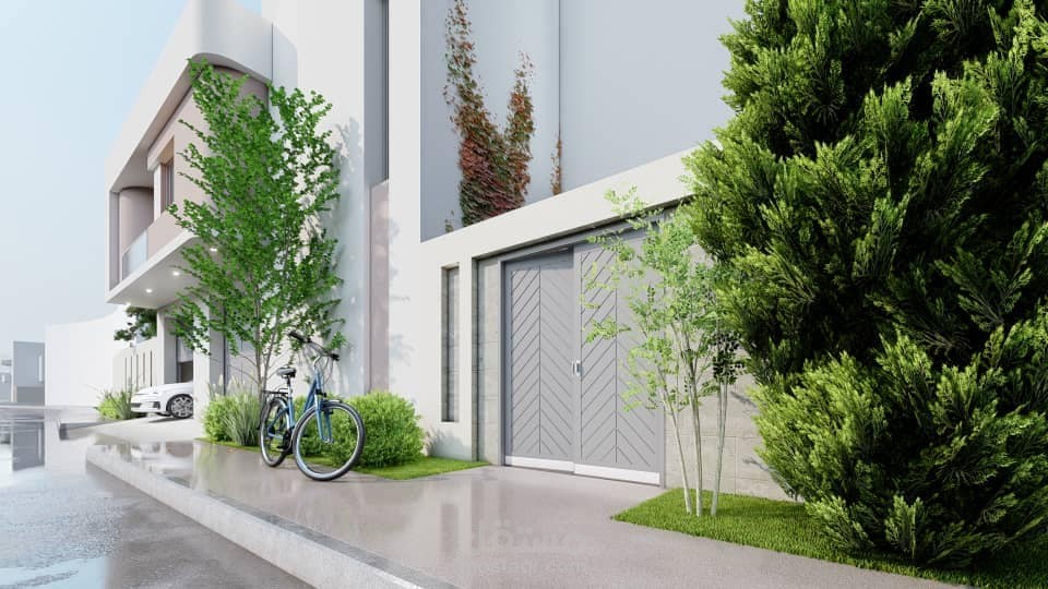 المنزل مبني على مساحة 160م2 بواجهة 16م و حديقة خلفية.