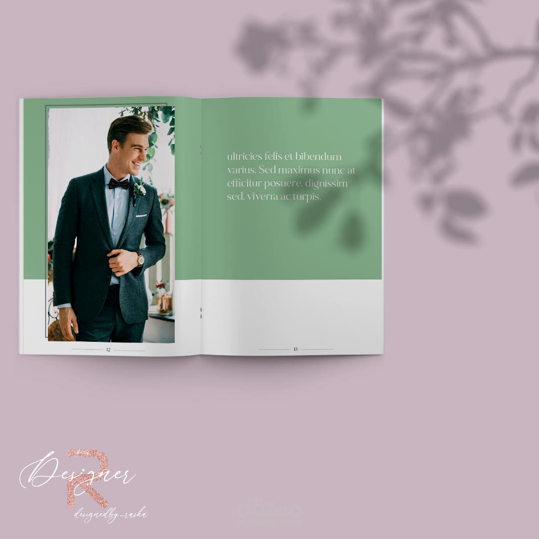 تصميم مجلة vogue عن ملابس العرس للامرأه و الرجل و كان الديزاين عباره عن شكل المربع الذي يعبر عن الانتضام و الحديه و كان اختيار الالون موفق اخترت الوان ترندي و مريحه للنظر ....