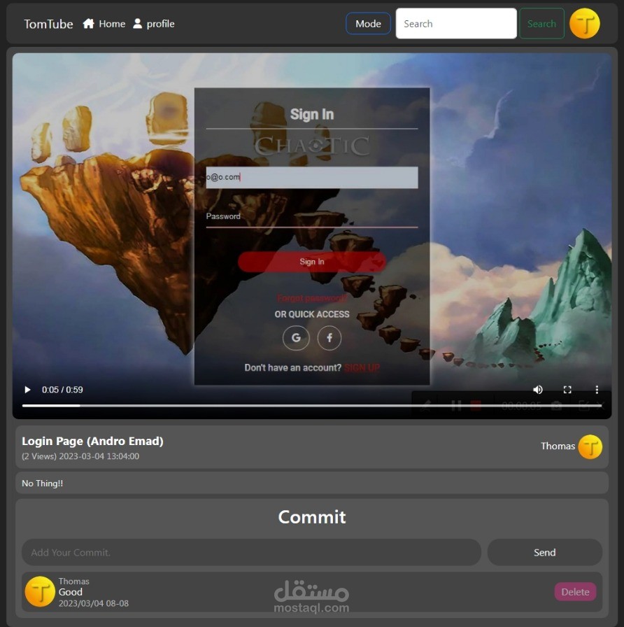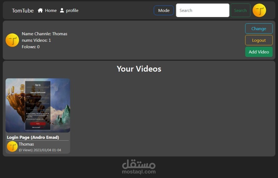 - فكرة الموقع شبه YouTube تقدر ترفع عليه فديوهات وكدا.