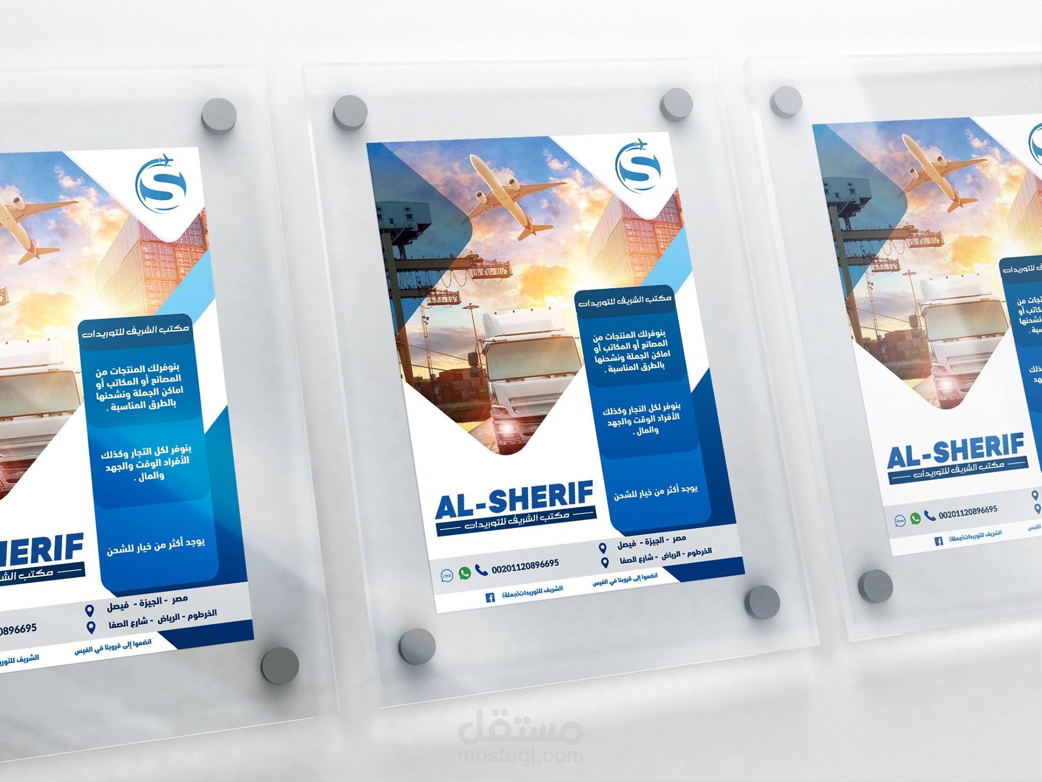 تصميم شعار لمكتب الشريف وهو مكتب توريدات ويعمل كوسيط تجاري لنقل البضائع بين مصر والسودان