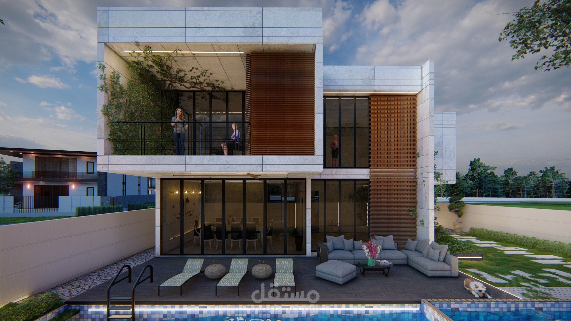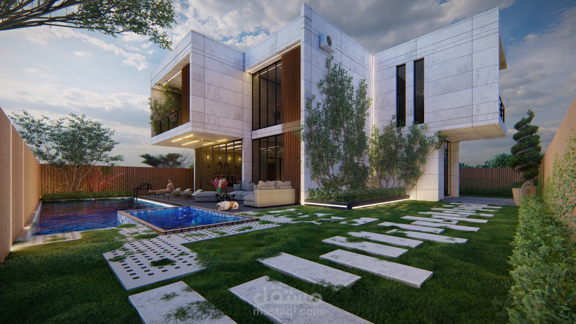 تصميم فيلا مودرن داخلي وخارجي مع رندر