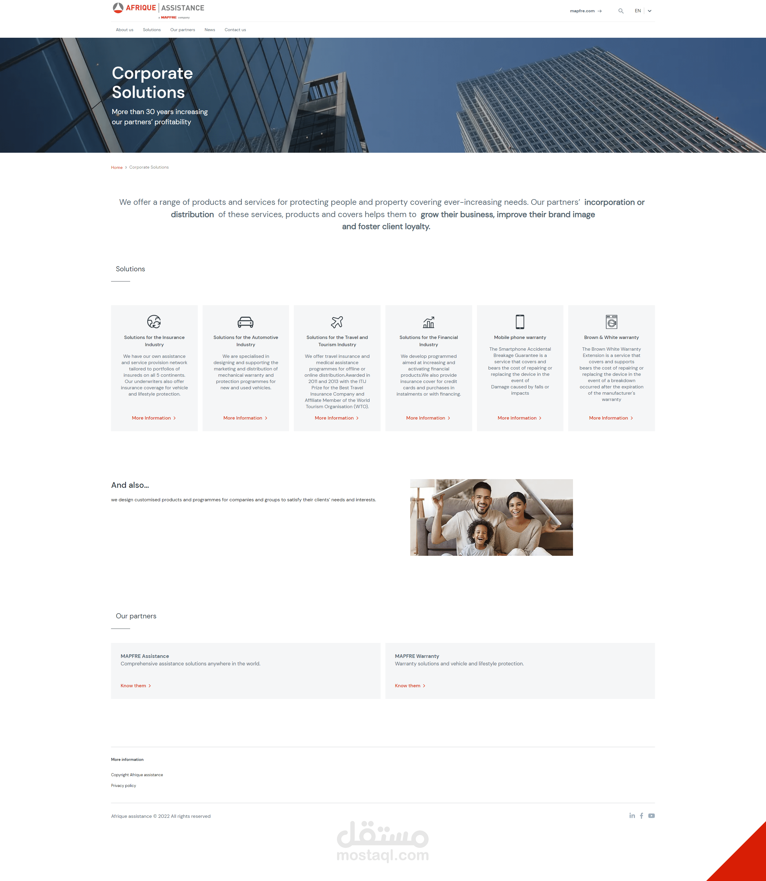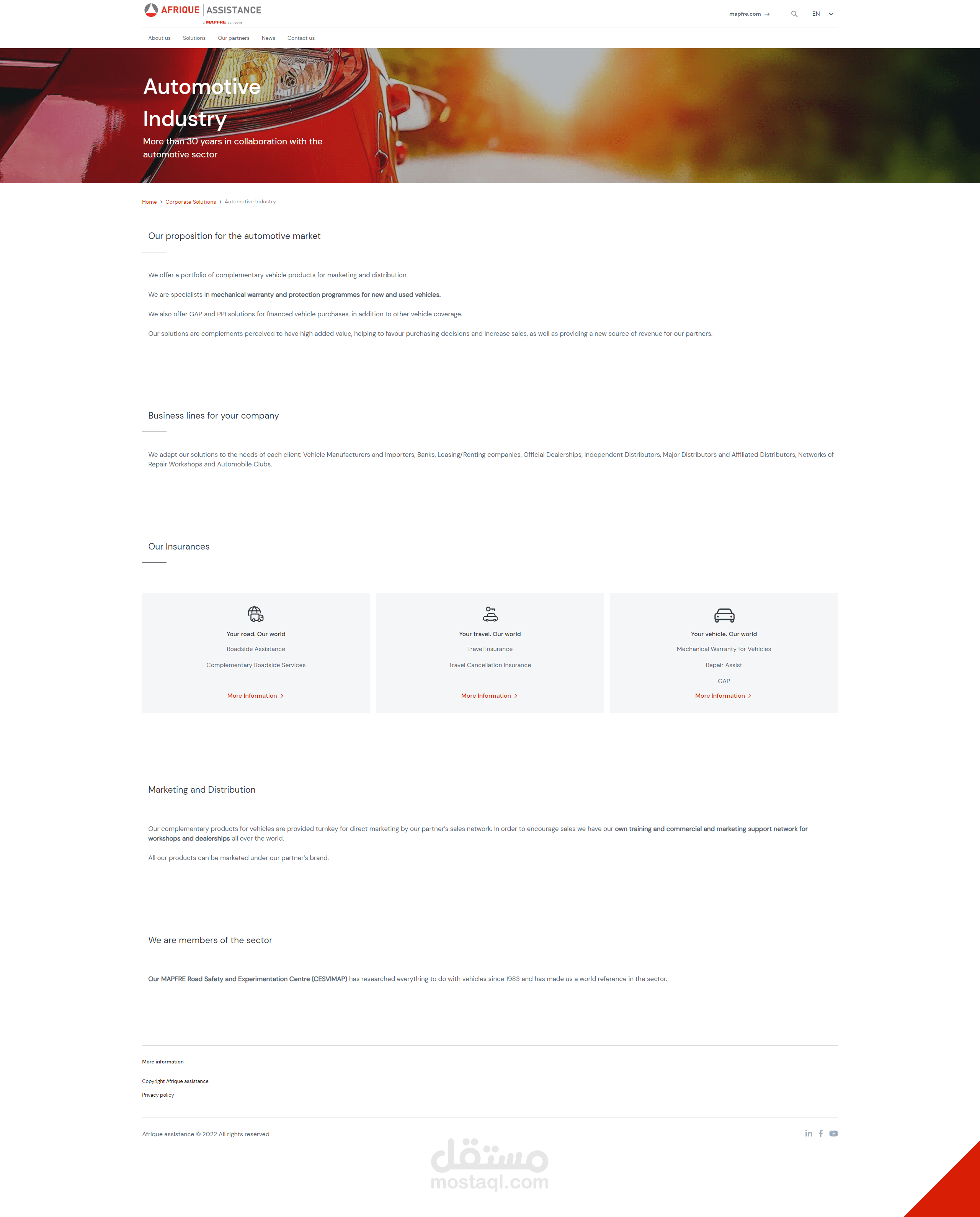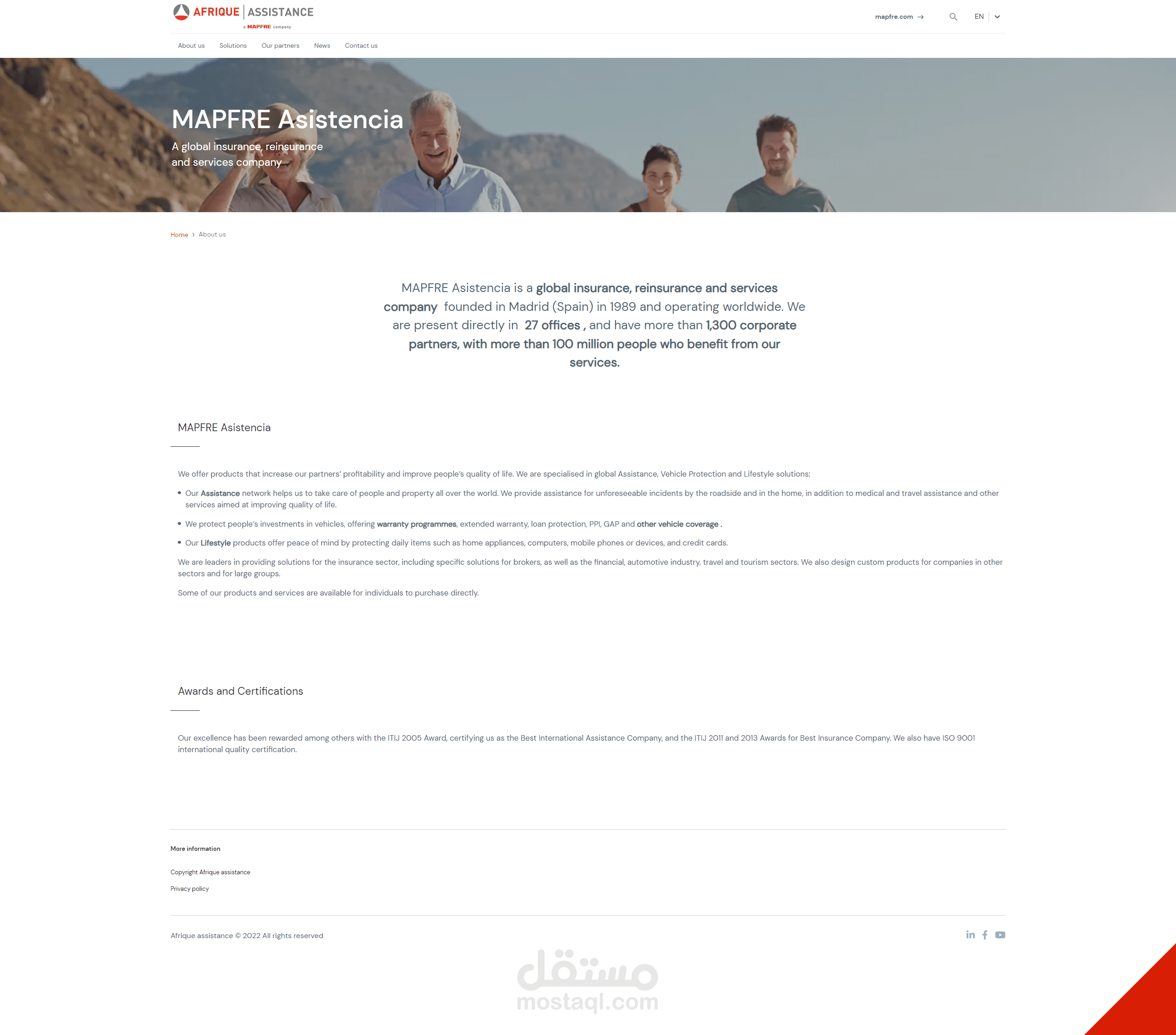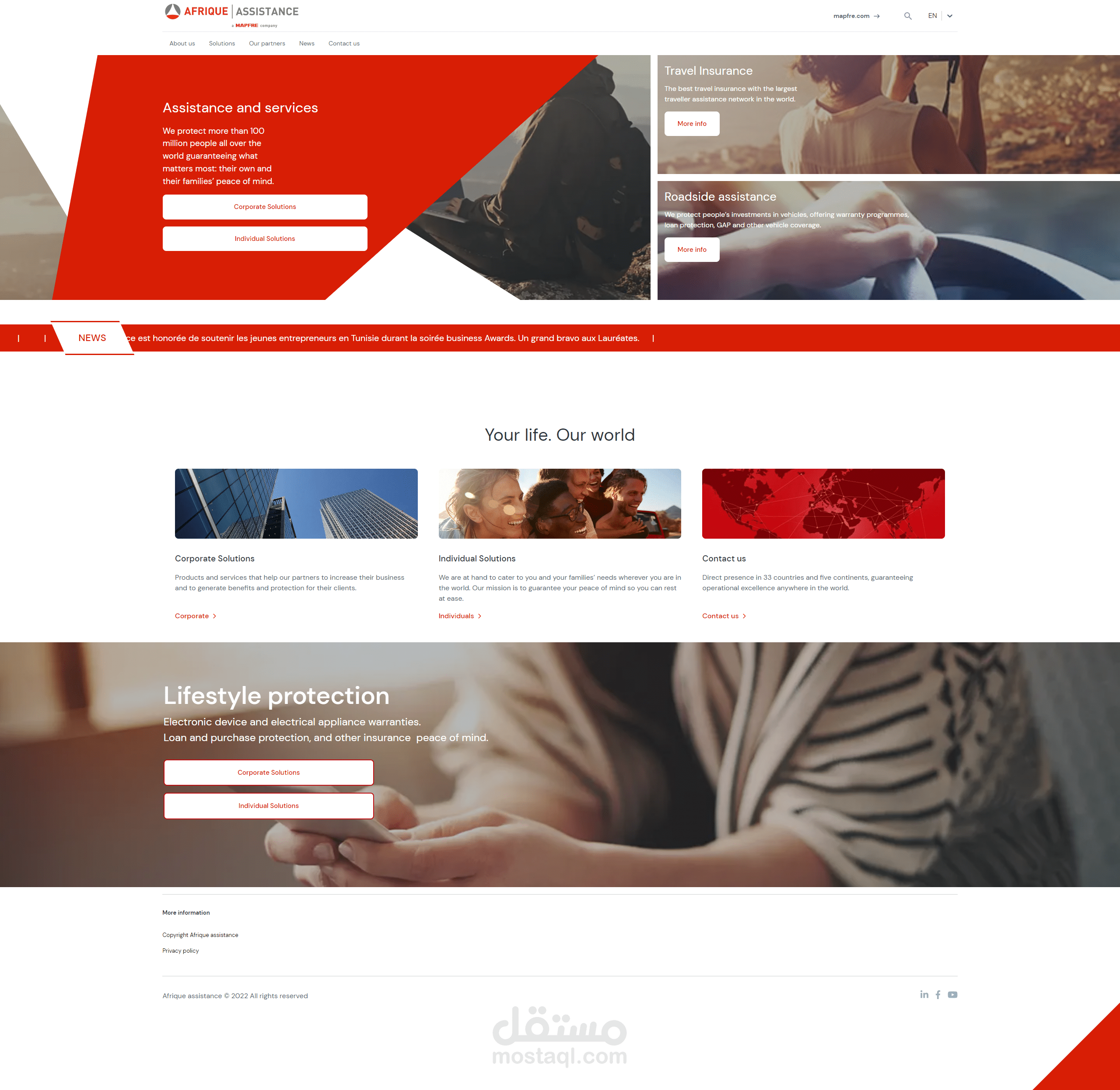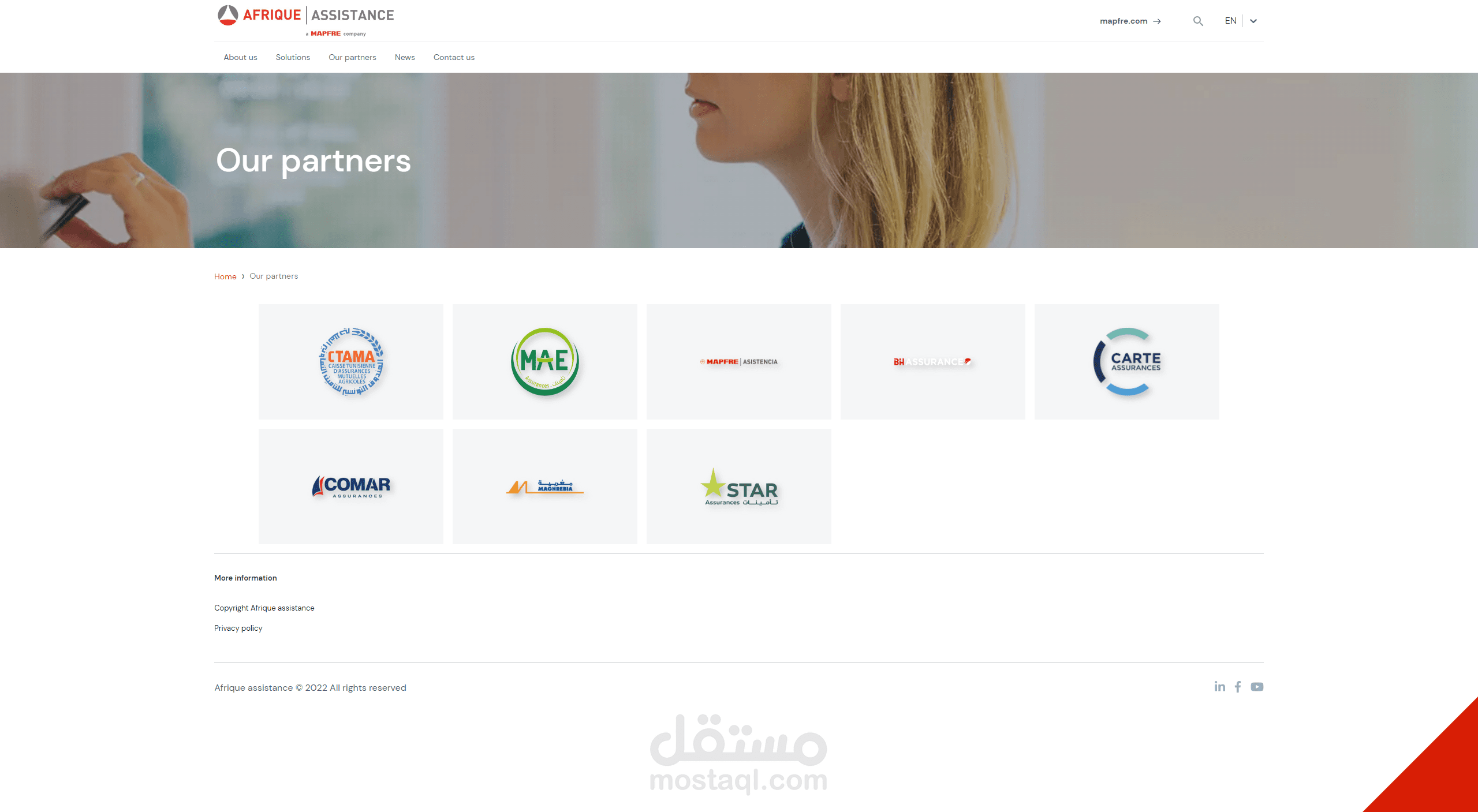 موقع يعرض الخدمات التي تقدمها Afrique Assistance