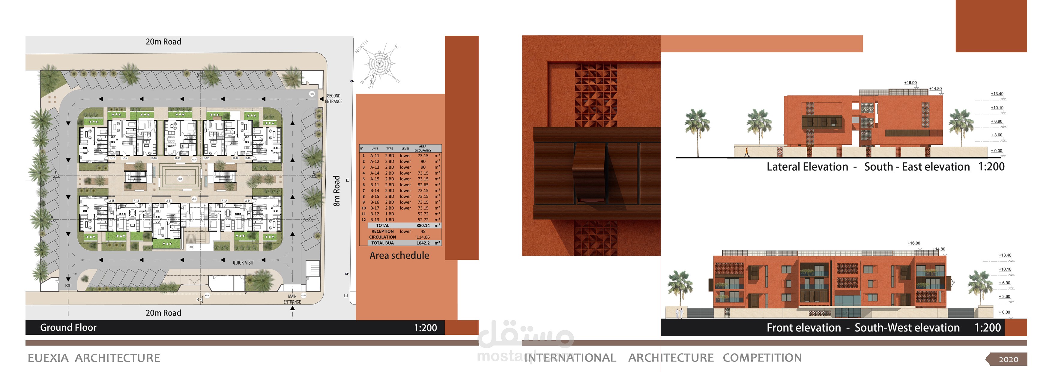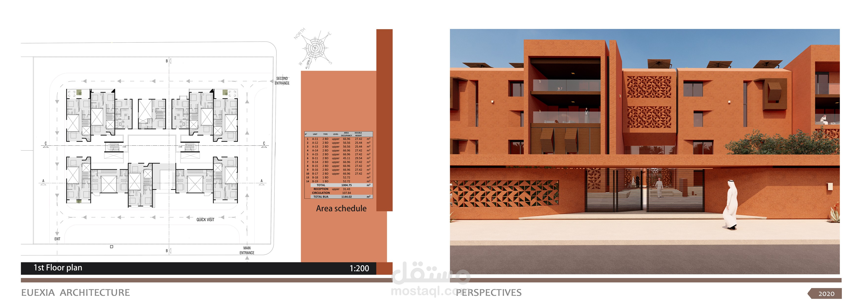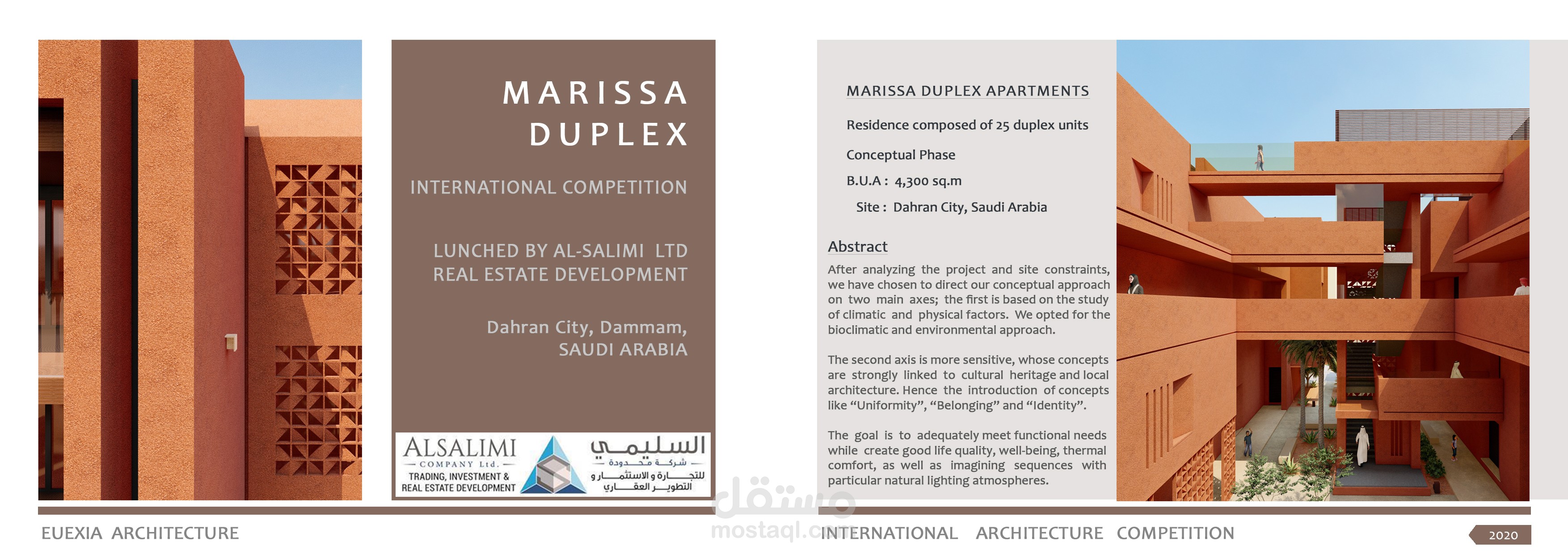 عبارة عن 25 وحدة دوبليكس في مركب سكني مصمم بطريقة موديرن مع كونسيبت مستوحى من الهندسة المعمارية التقليدية للمنطقة