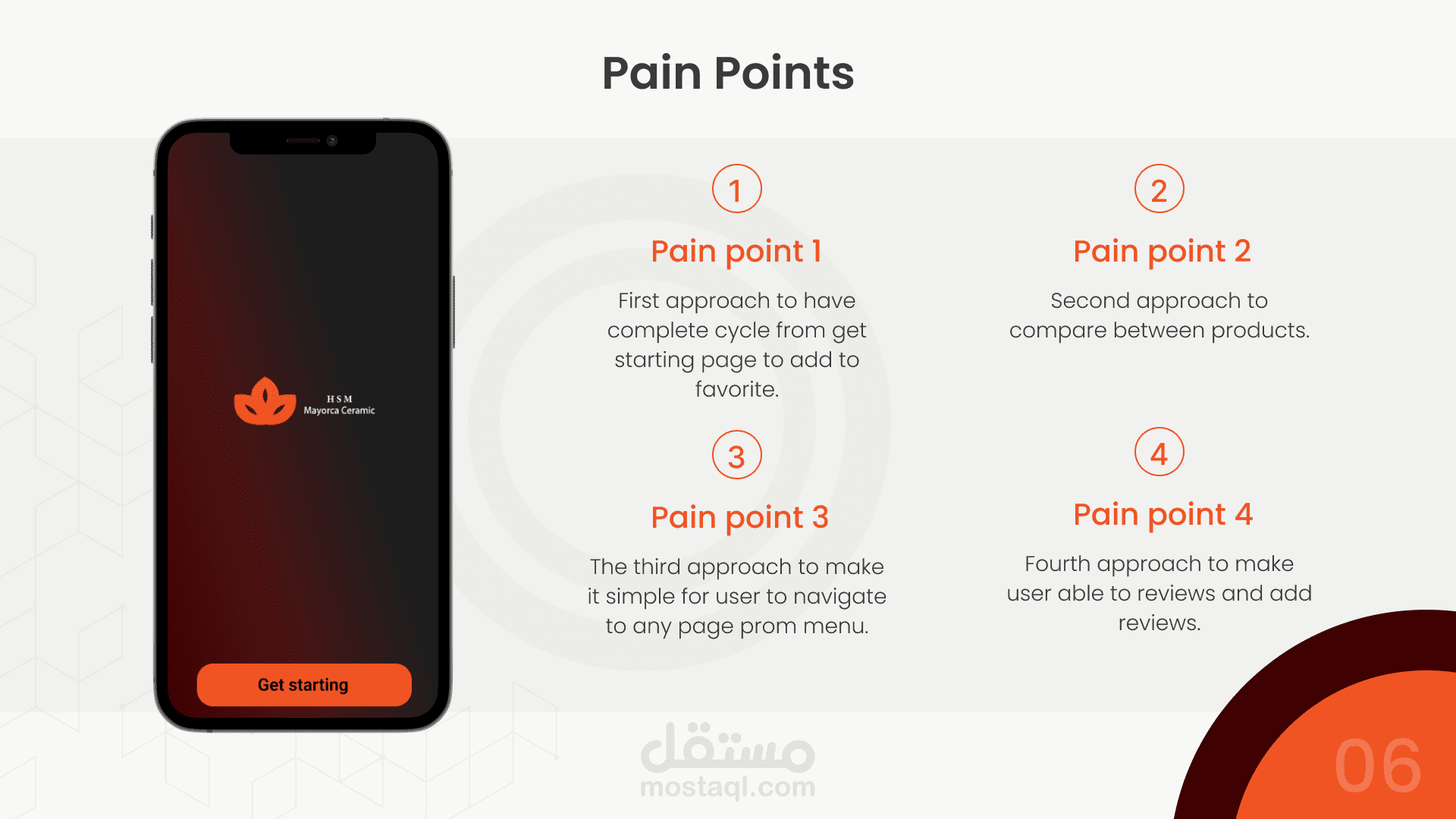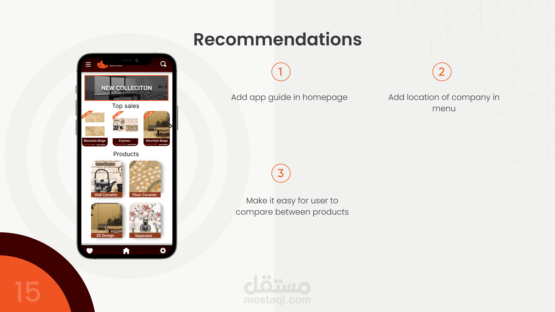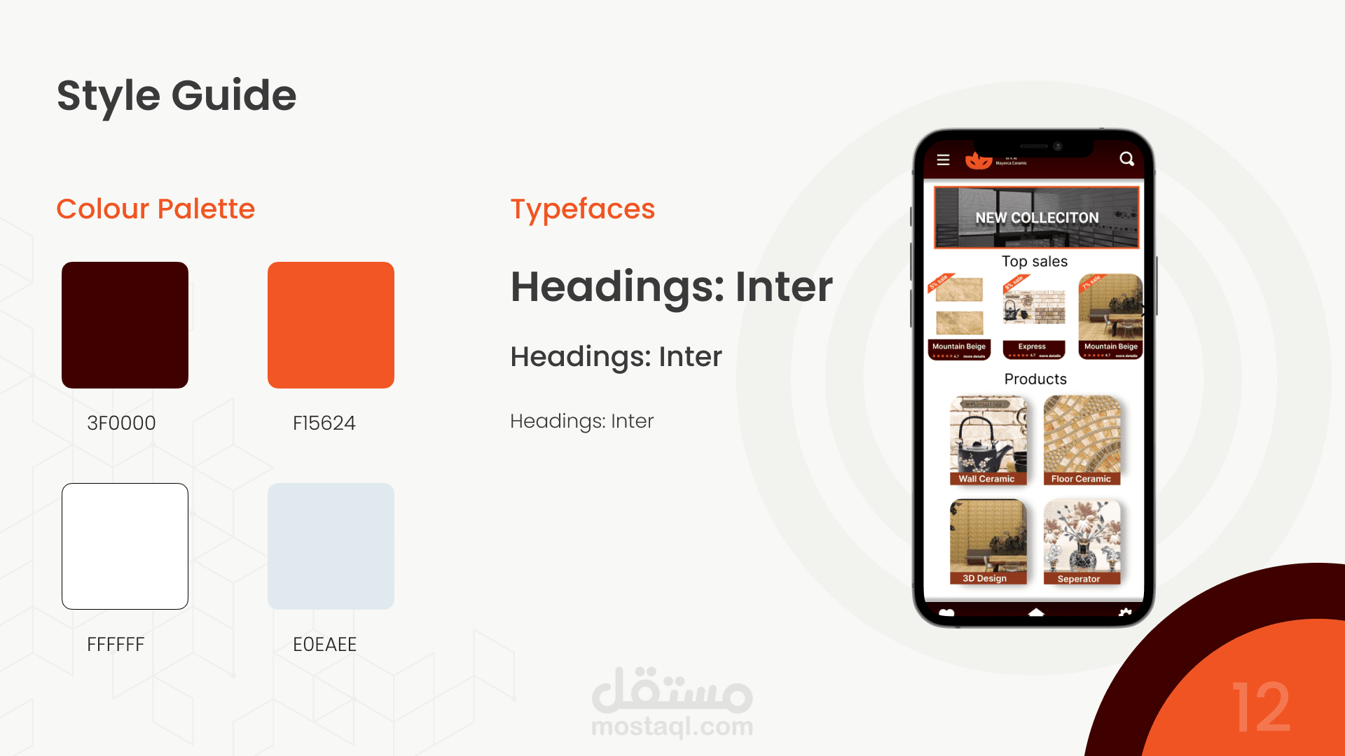 تصميم لشركة سيراميكا مايوركا لعرض المنتجات الجديدة للتجار بشكل مبسط. التطبيق يوضح قيمة المنتج والفكرة وراء كل تصميم.