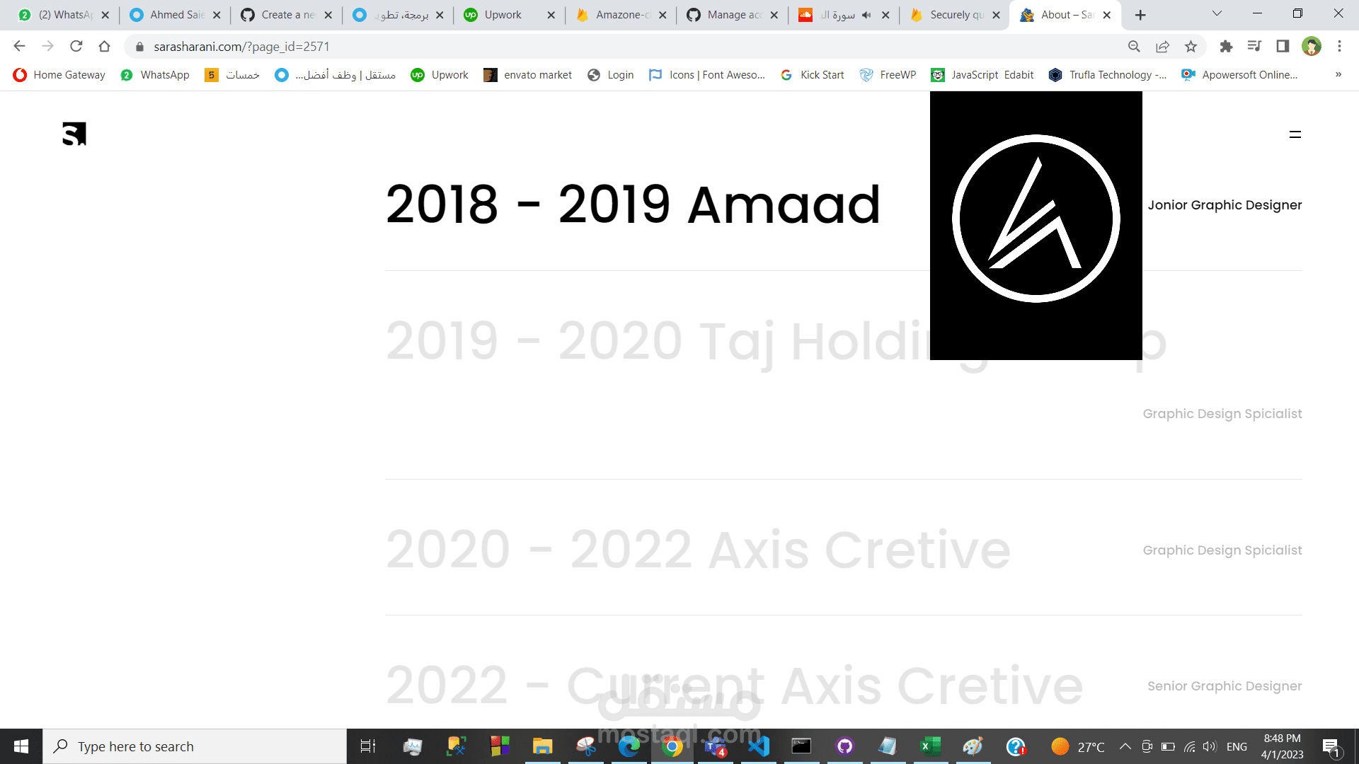 موقع بورتفوليوا لعرض الاعمال والمشاريع السابقه تم انشاءه بالوردبريس