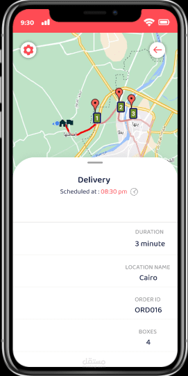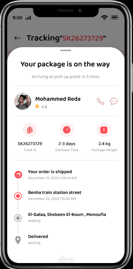 * يوجد بالتطبيق خدمه التتبع للشحنه عن طريق Google Maps وتتبع مكان المندوب الحالي