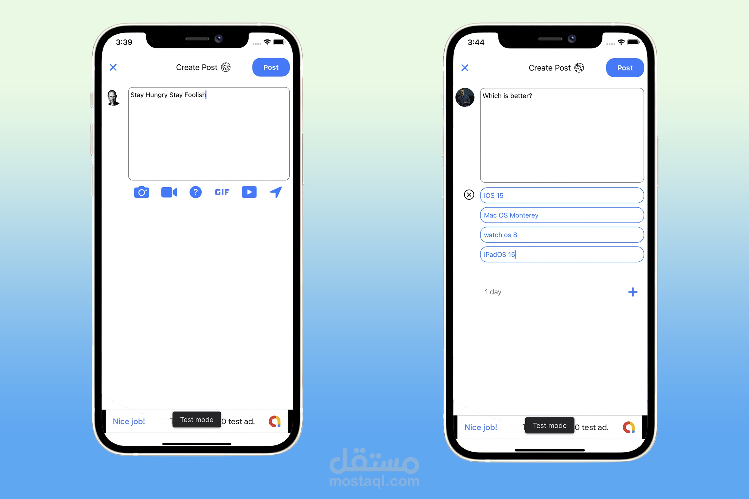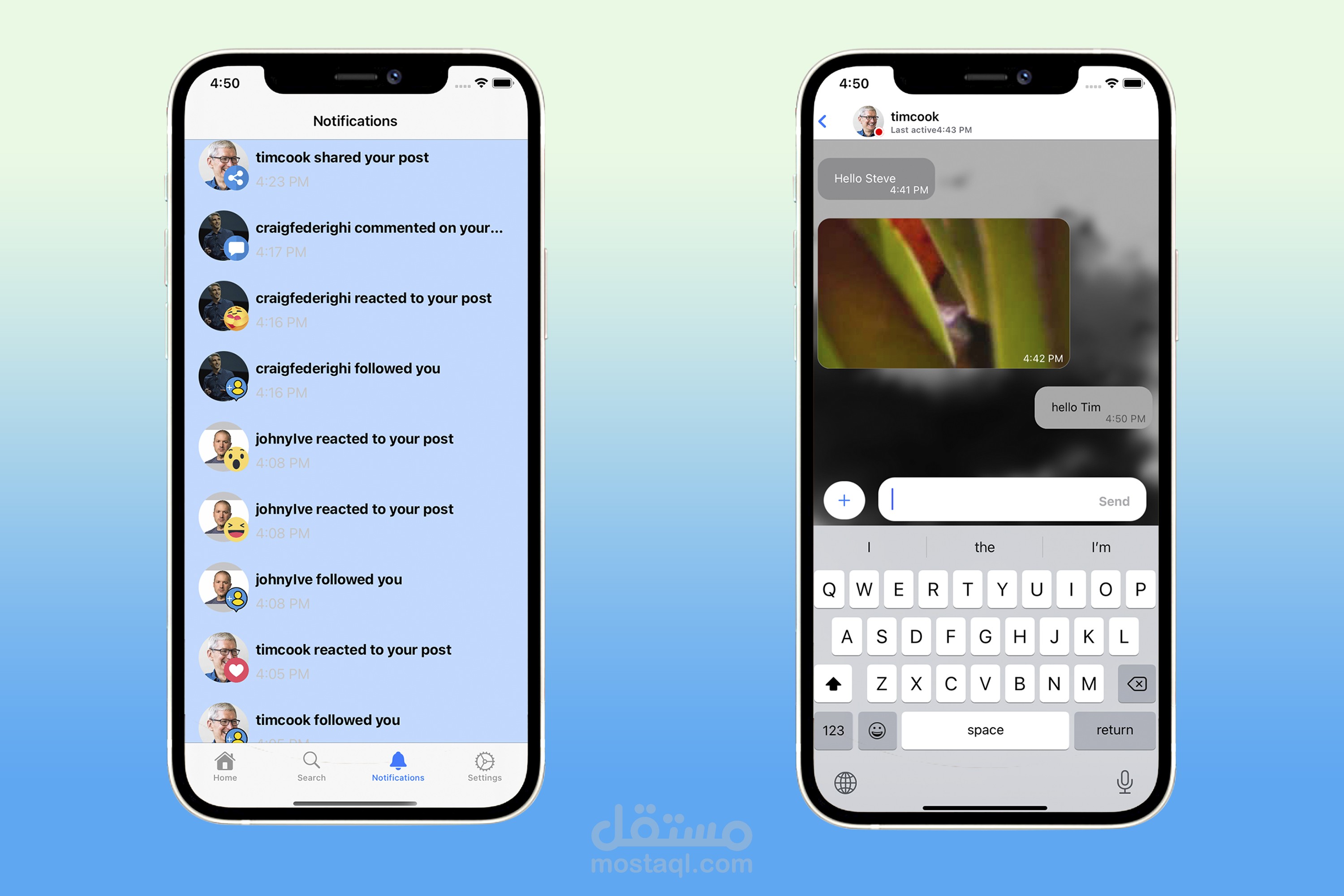 مقدمة: أحدث مشروع تطوير تطبيقاتي هو منصة وسائل التواصل الاجتماعي الحديثة التي توفر بيئة سهلة وآمنة وممتعة للمستخدمين للتواصل والمشاركة والتفاعل مع الآخرين. يتم بناء التطبيق باستخدام أحدث التقنيات بما في ذلك Swift و SwiftUI و Restful API و Firebase ويوفر تصميمًا أنيقًا ومجموعة من الميزات التي تعزز تجربة المستخدم. الميزات: بنيت باستخدام Swift و SwiftUI لتوفير تجربة مستخدم سلسة متكاملة مع Firebase لإدارة البيانات الآمنة والفعالة يدعم وضع الإضاءة الخفيفة والداكنة للتخصيص تسجيل الدخول بالبريد الإلكتروني وإدخال اسم المستخدم لإنشاء حساب بسرعة وسهولة إمكانية إضافة تدوينات النص والصور والفيديو والموقع وملفات GIF والاستطلاعات ومقاطع فيديو YouTube لإنشاء محتوى متنوع إمكانية الرد على المنشورات والرسائل وتشفير الرسائل من النهاية إلى النهاية لحماية الخصوصية نظام البحث عن المستخدمين ومتابعتهم لاكتشاف أشخاص جدد والتواصل مع الآخرين إمكانية المراسلة المباشرة مع رسائل نصية وصور وفيديو مشفرة للمحادثات الخاصة إشعارات لأي نشاط وتفاعل جديد على المنصة لإبقائك على اطلاع.
