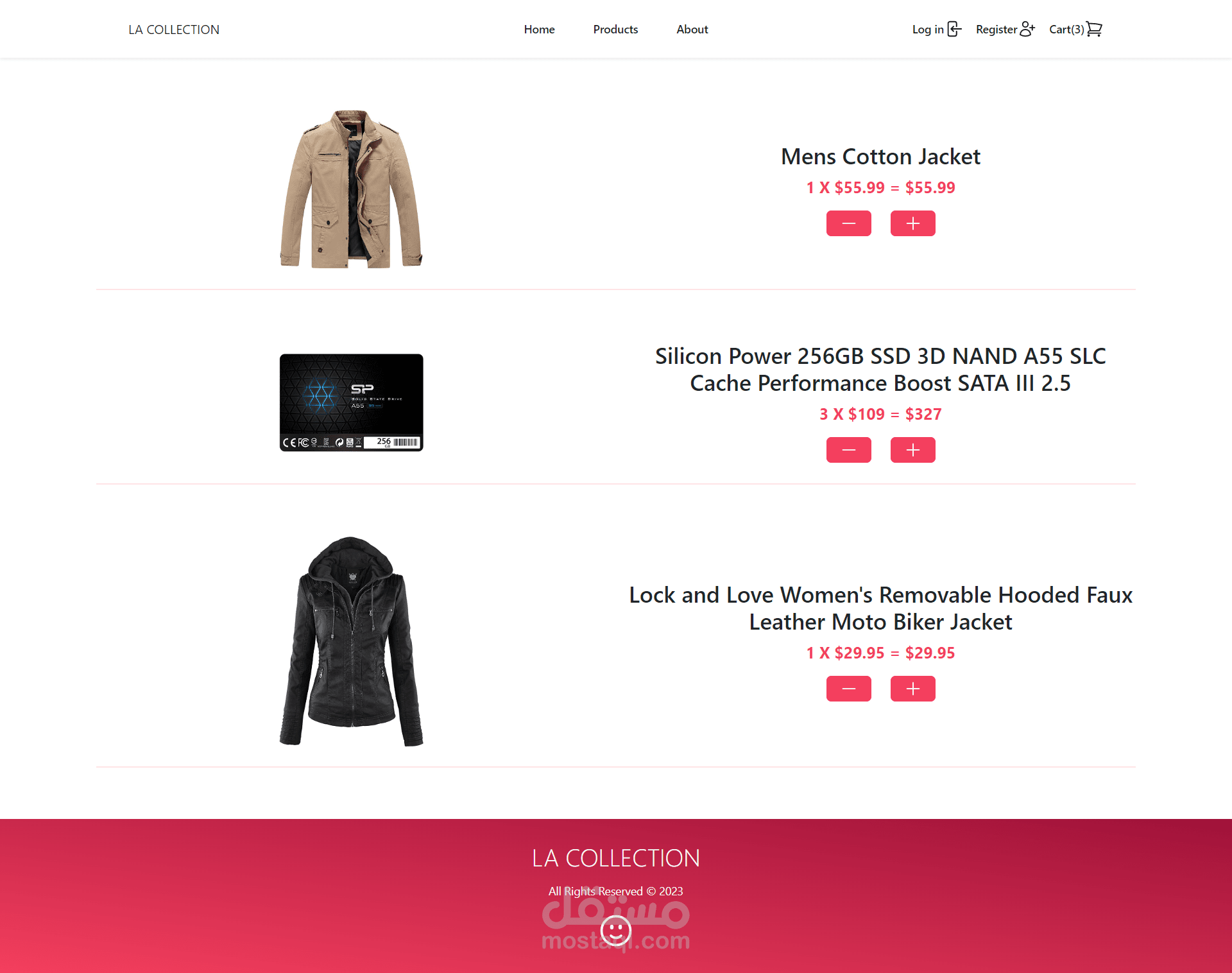 موقع (react) تجاري يحتوي على متجر وسلة مشتريات (CART) ومخزن بيانات عن طريق REDUX