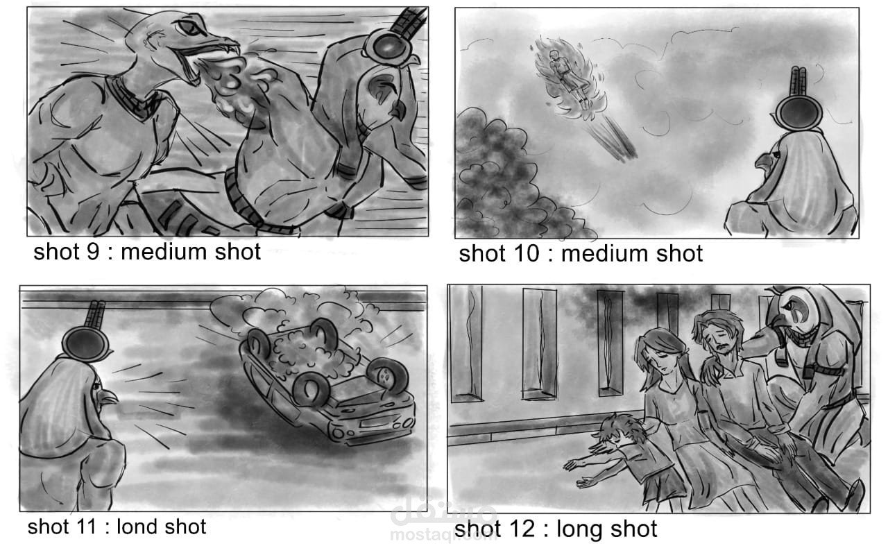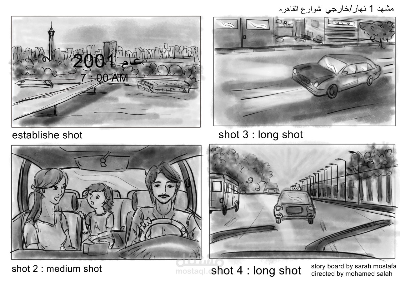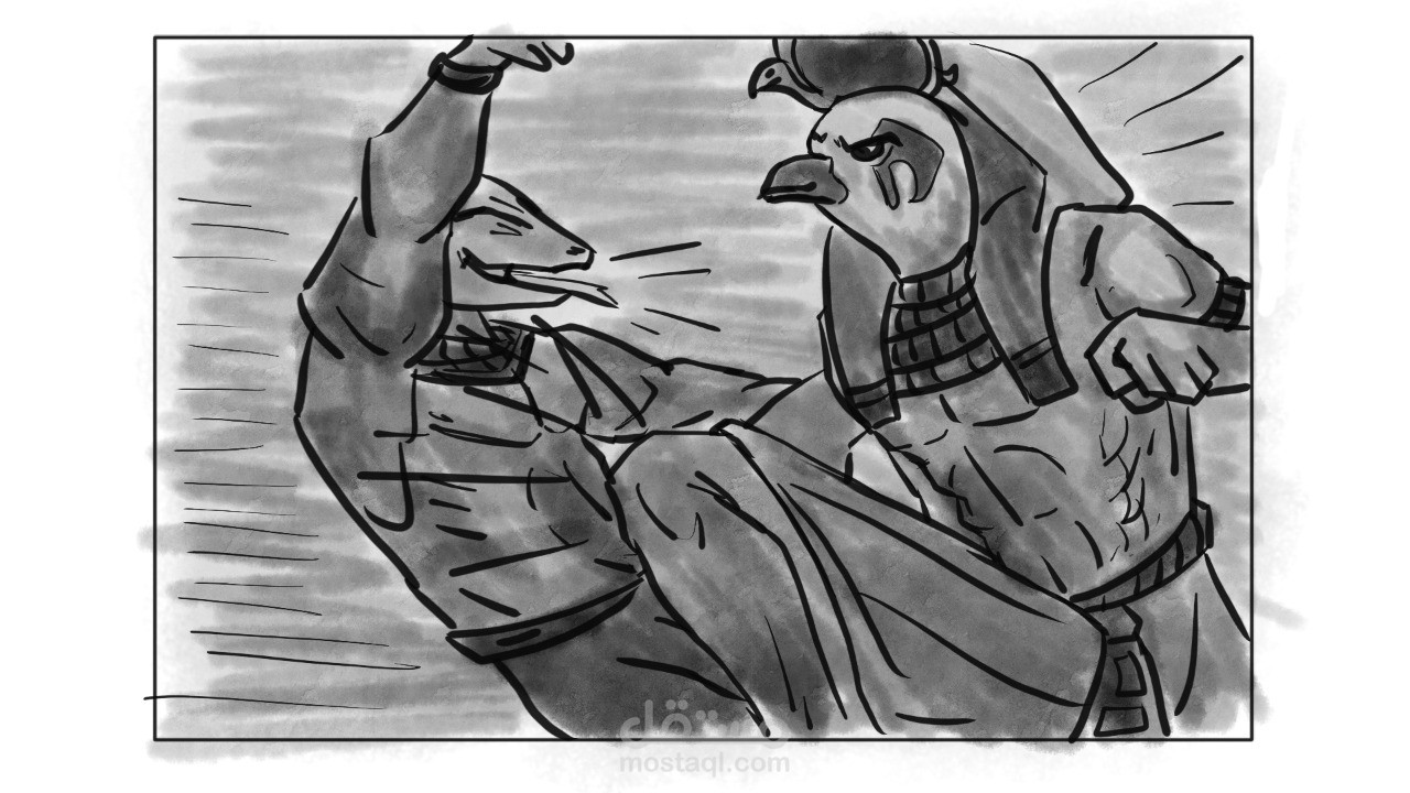 ستوري بورد مرسرمه ابيص واسود ولقصه عن الفراعنه تم رسمها رقمي digital painting علي برنامج Photoshop, sketch book l اتمني تعجبكم