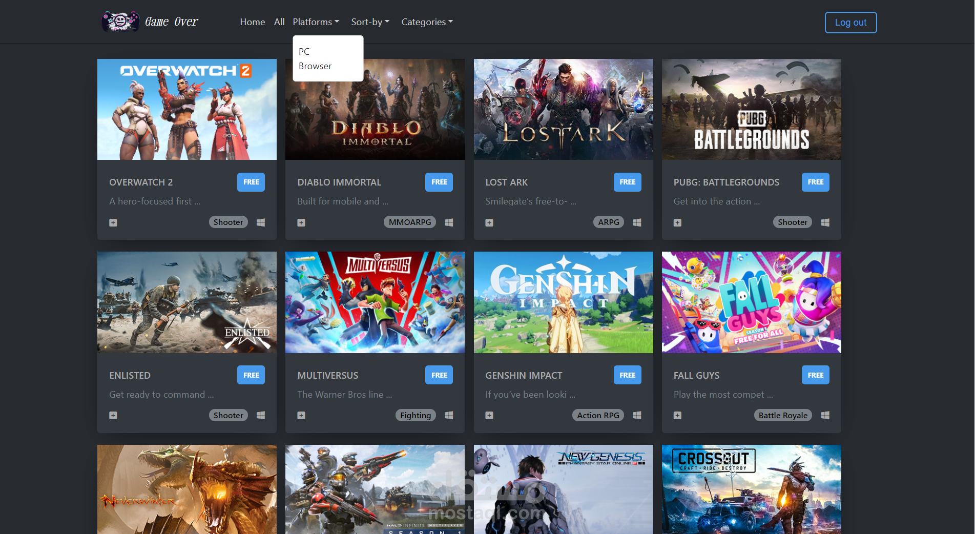 • Developed a Single Page Application (SPA) using React JS called Game Over which displays video games playable on both web browsers and Windows.