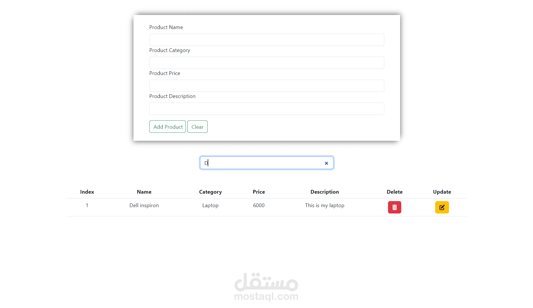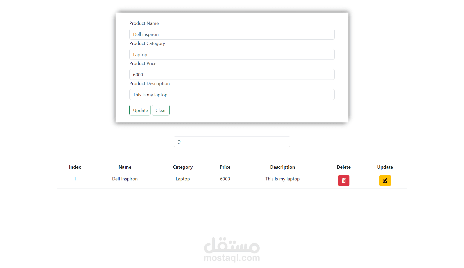 • The user can view, update, and delete the product information.