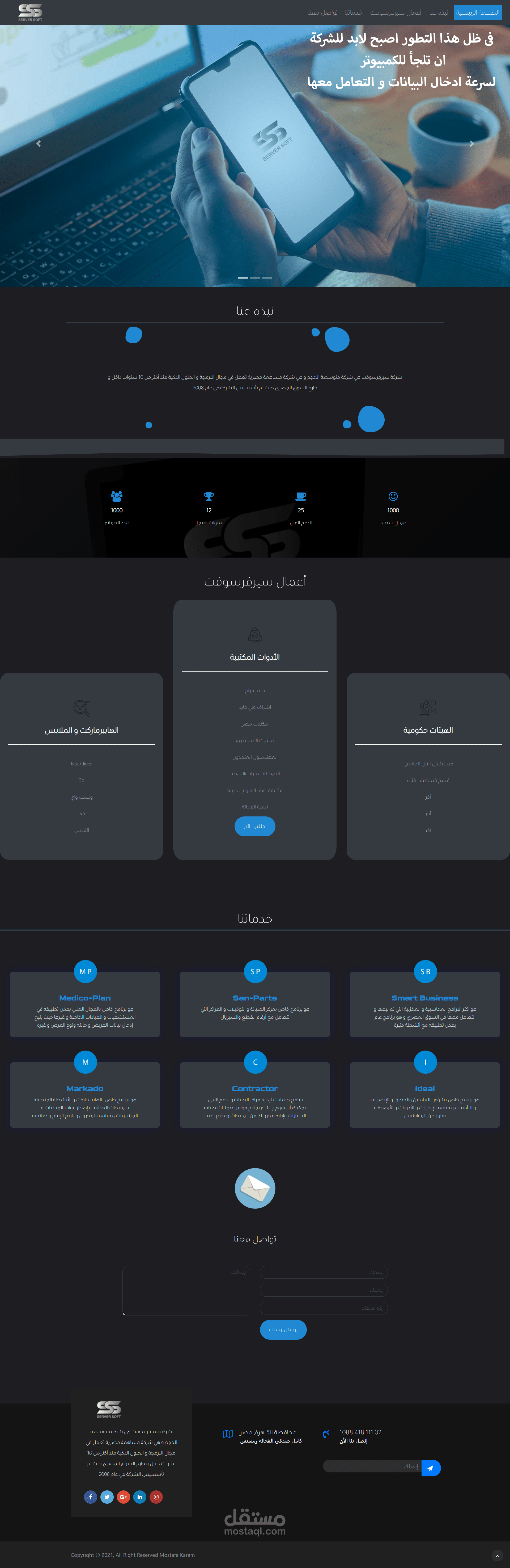 تصميم قالب مميز لشركات البرمجة يحتوي علي وصف كامل للخدمات مع تصميم متميز للعرض بأستخدام احدث التقنيات