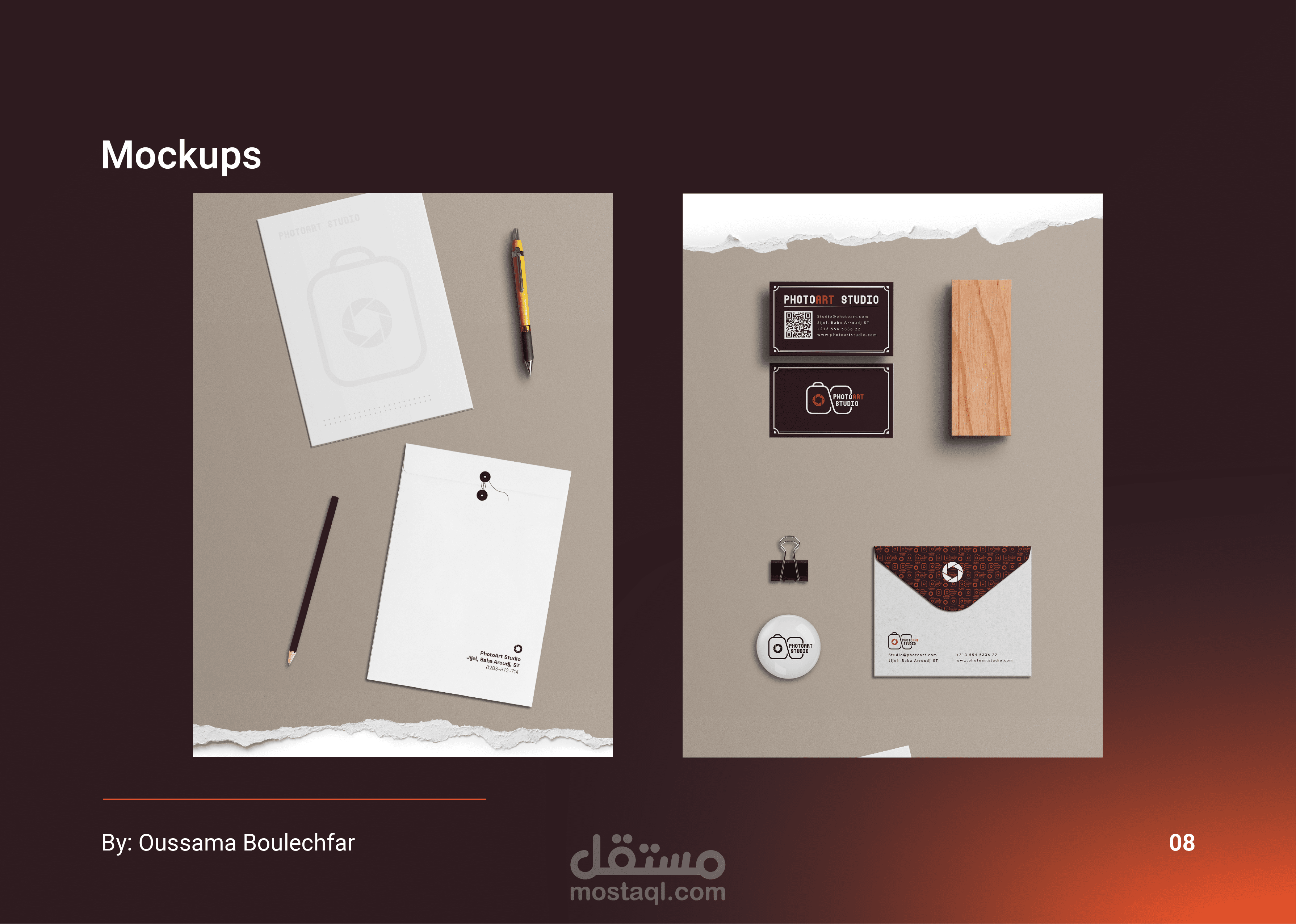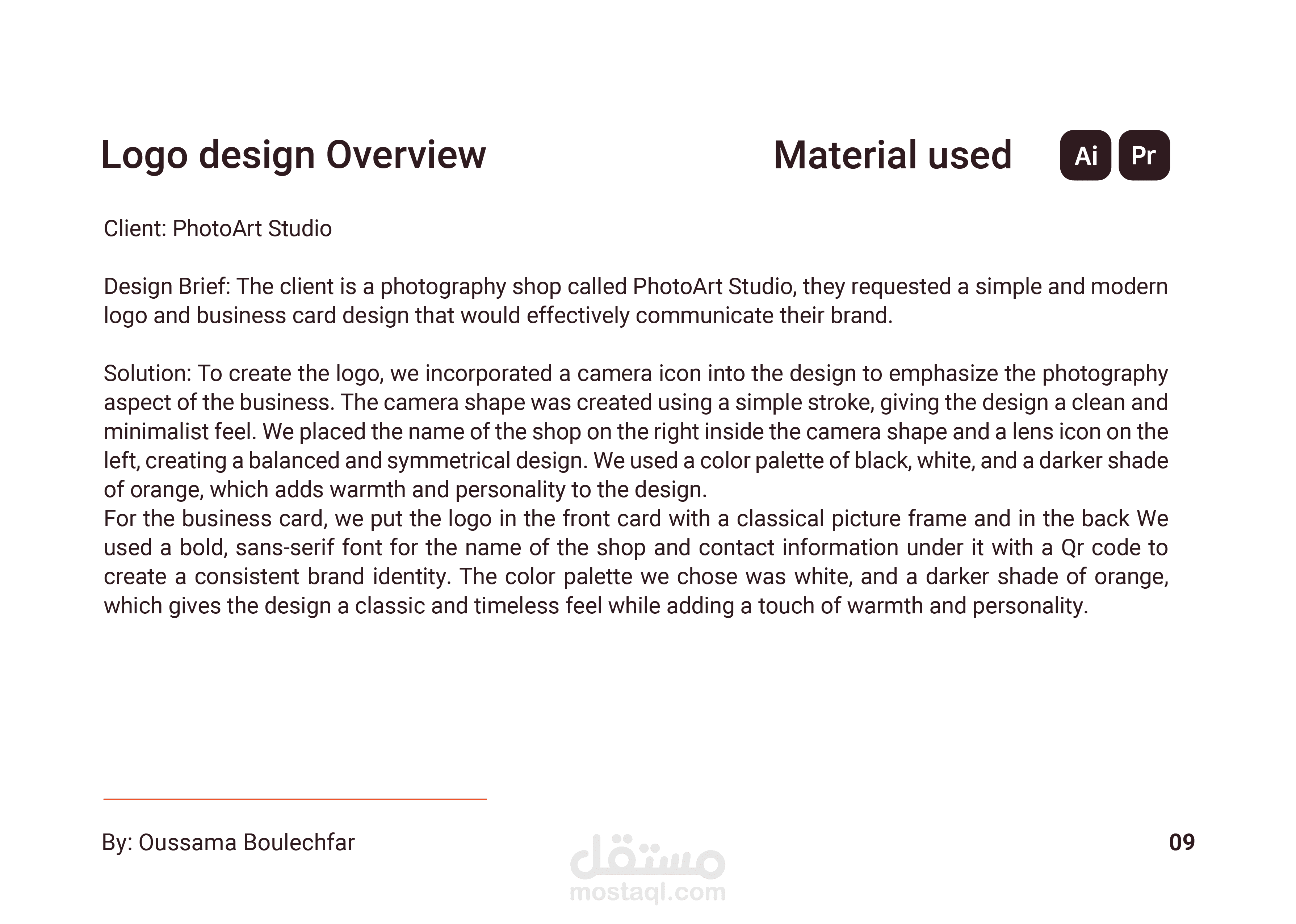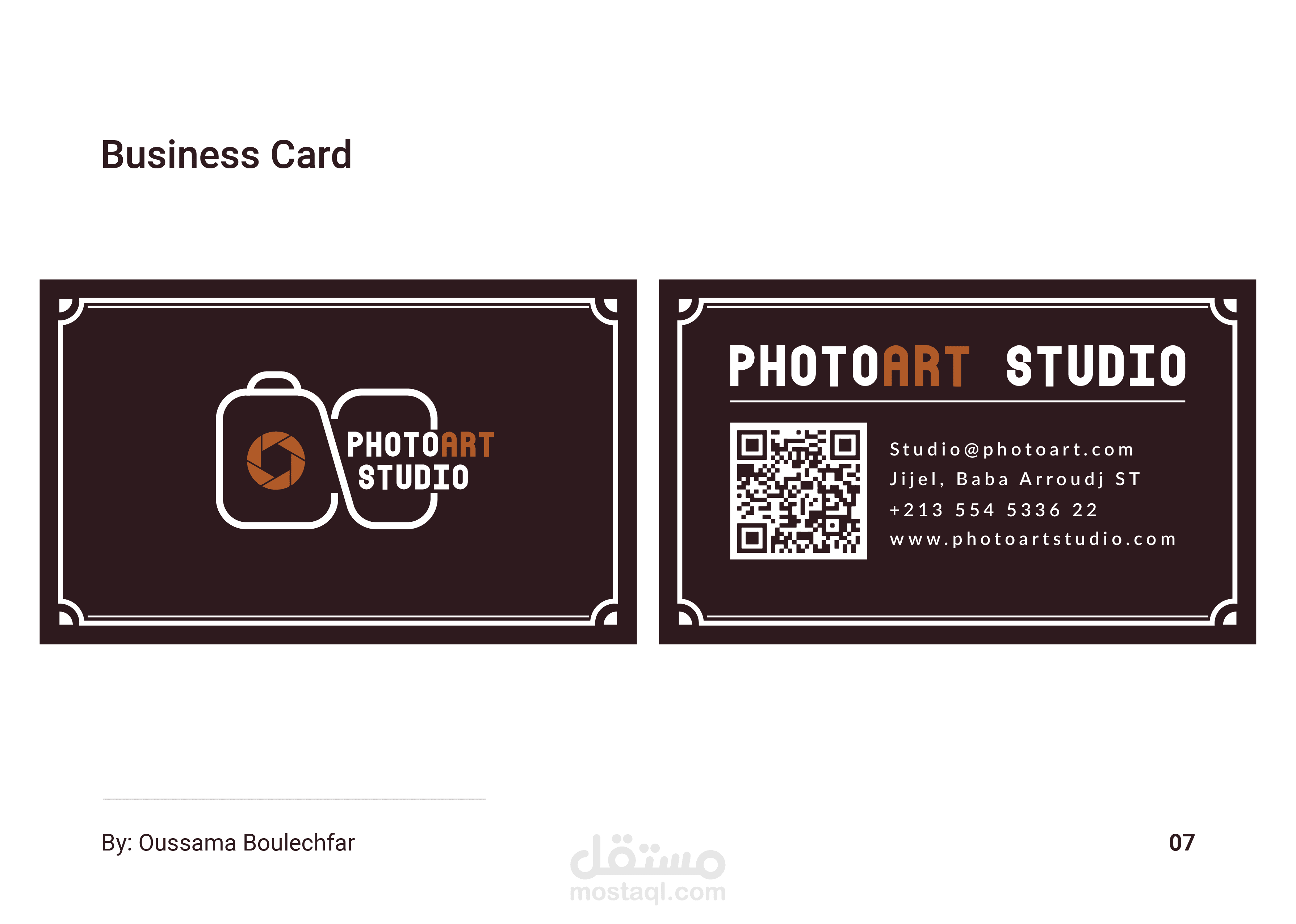 نظرة عامة على التصميم: العميل عبارة عن متجر للتصوير الفوتوغرافي يسمى PhotoArt Studio ، وقد طلبوا شعارًا بسيطًا وحديثًا وبطاقة عمل من شأنها توصيل علامتهم التجارية بشكل فعال.