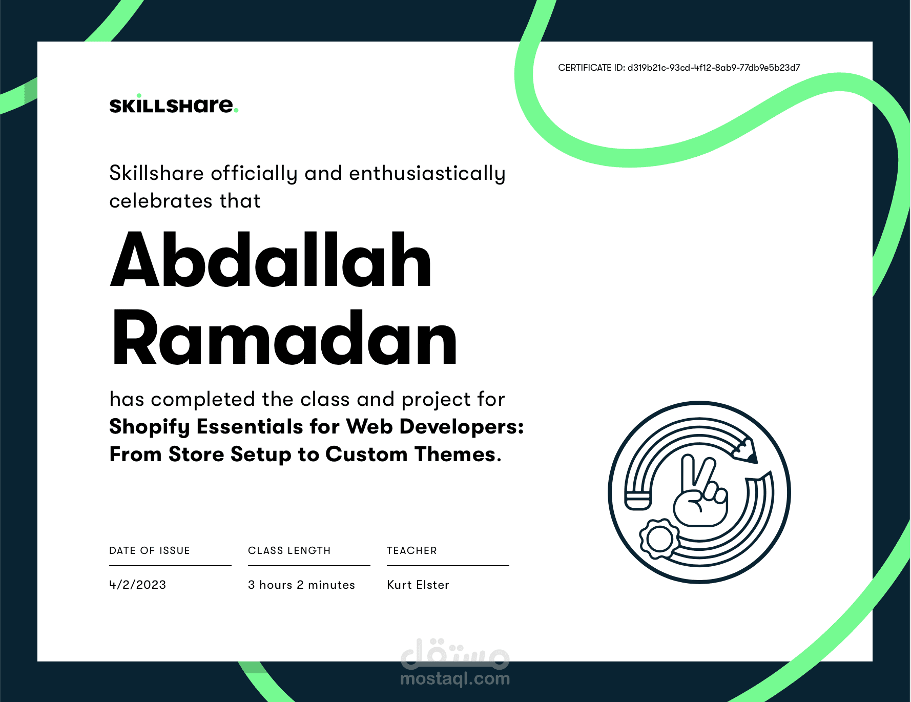 الحمد لله تخرجت من كورس تصميم وتطوير متاجر شوبيفاي
