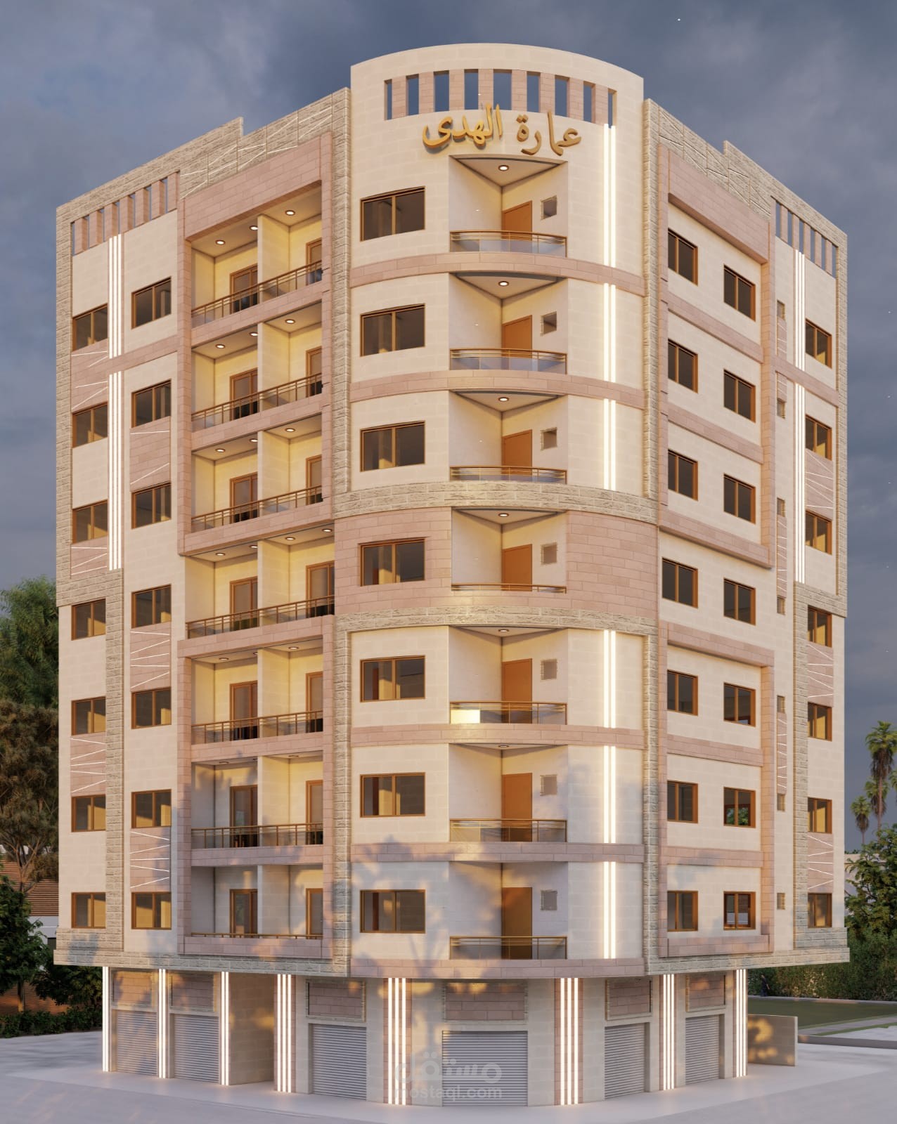 - تصميم واجهات عمارة الهدى السكنية || غزة.