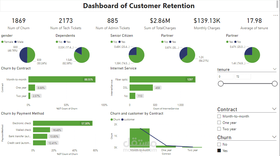 أنشأنا لوحة معلومات لمدير الاحتفاظ تعكس مؤشرات الأداء الرئيسية.