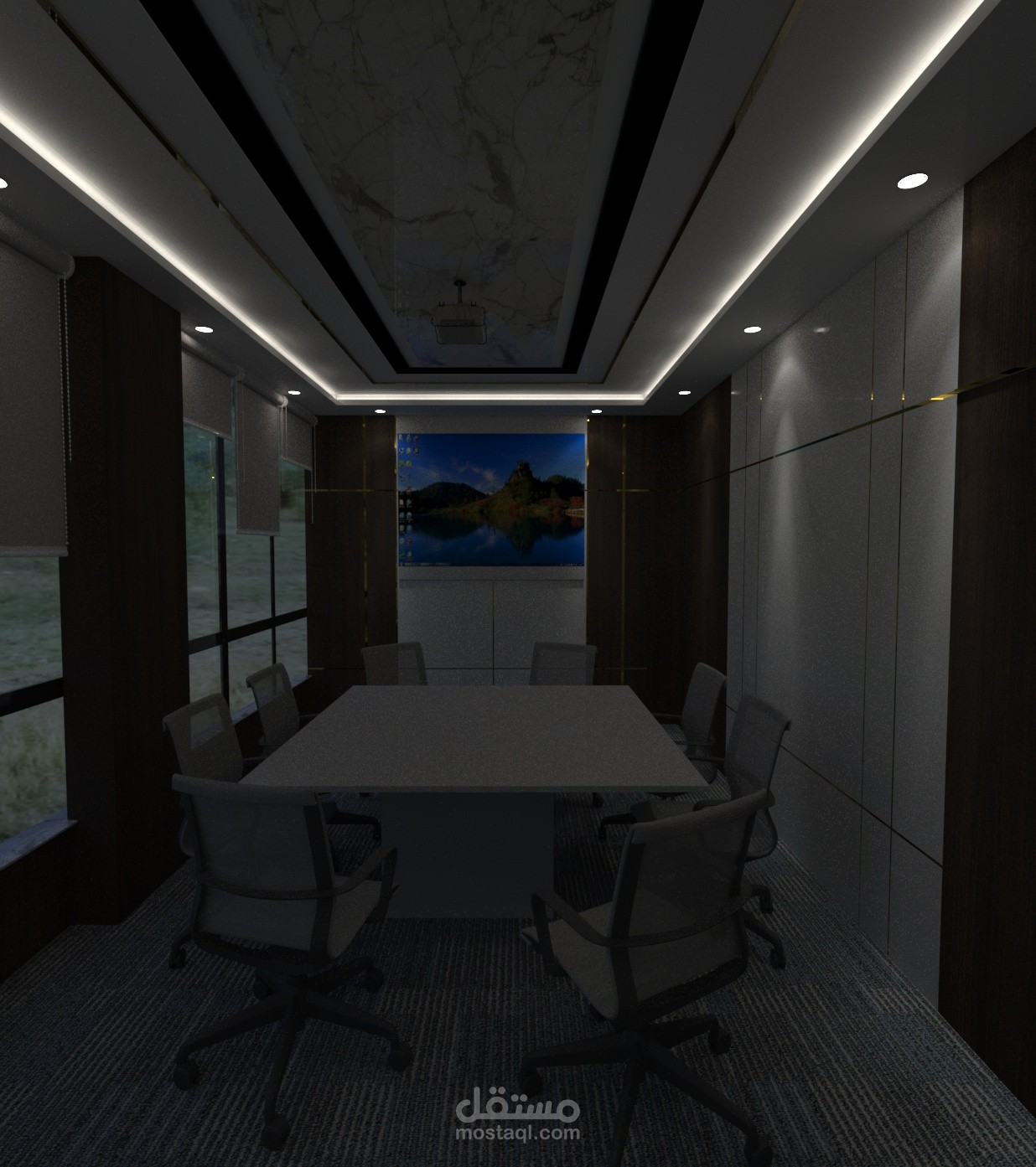 غرفة اجتماعات بتوزيع مساحات والاضاءة بواسطه استخدام برنامج 3dsmax