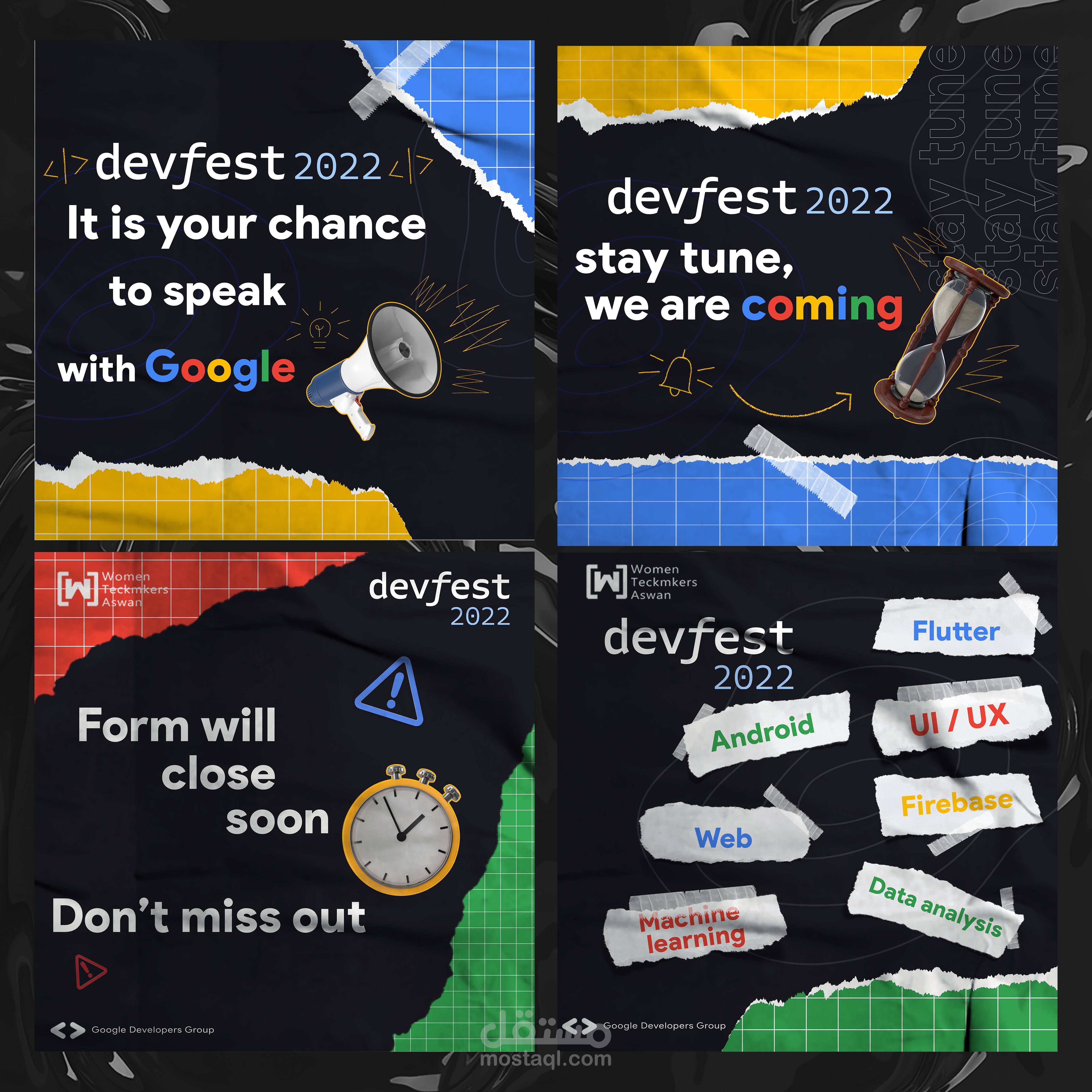 تصاميم سوشيال ميديا لحدث من الأحداث العالمية في مجال التكنولوجيا اللي بتقدمها جوجل DevFest Aswan 2022