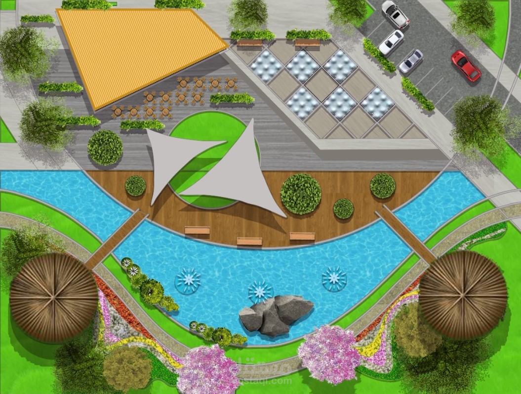 تصميم حدائق ولاندسكيب 2d بمختلف الطرز وطريق ابداعية مدروس فيها ممرات الحركة والخدمة الوظيفية لكل ركن على حدة من حيث سهولة الوصول والحركة واستغلال المساحات بطريقة جذابة ومريحة للعين والنفس من ثم الاظهار بواسطة برنامج الفوتوشوب .