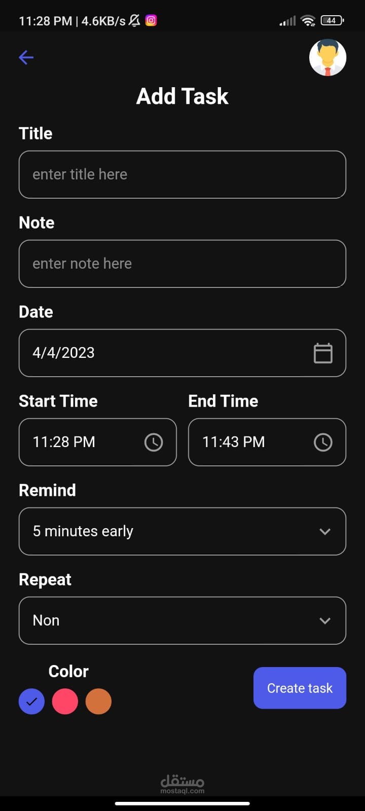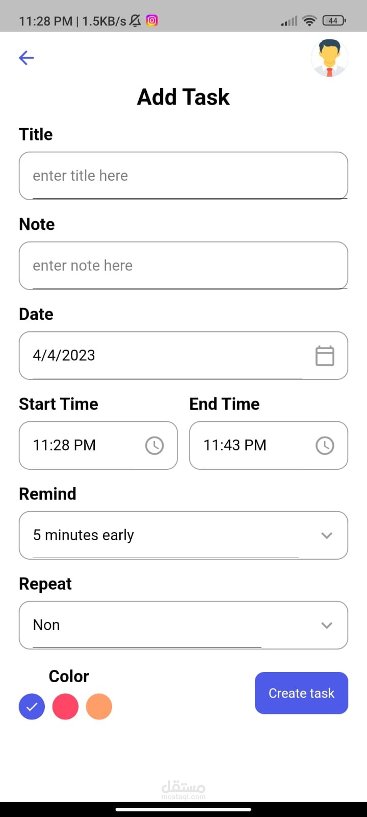 برنامج تذكير مطور باستخدام flutter ,MySQL واستخدام طريقة mvvm فى تنظيم الاكواد