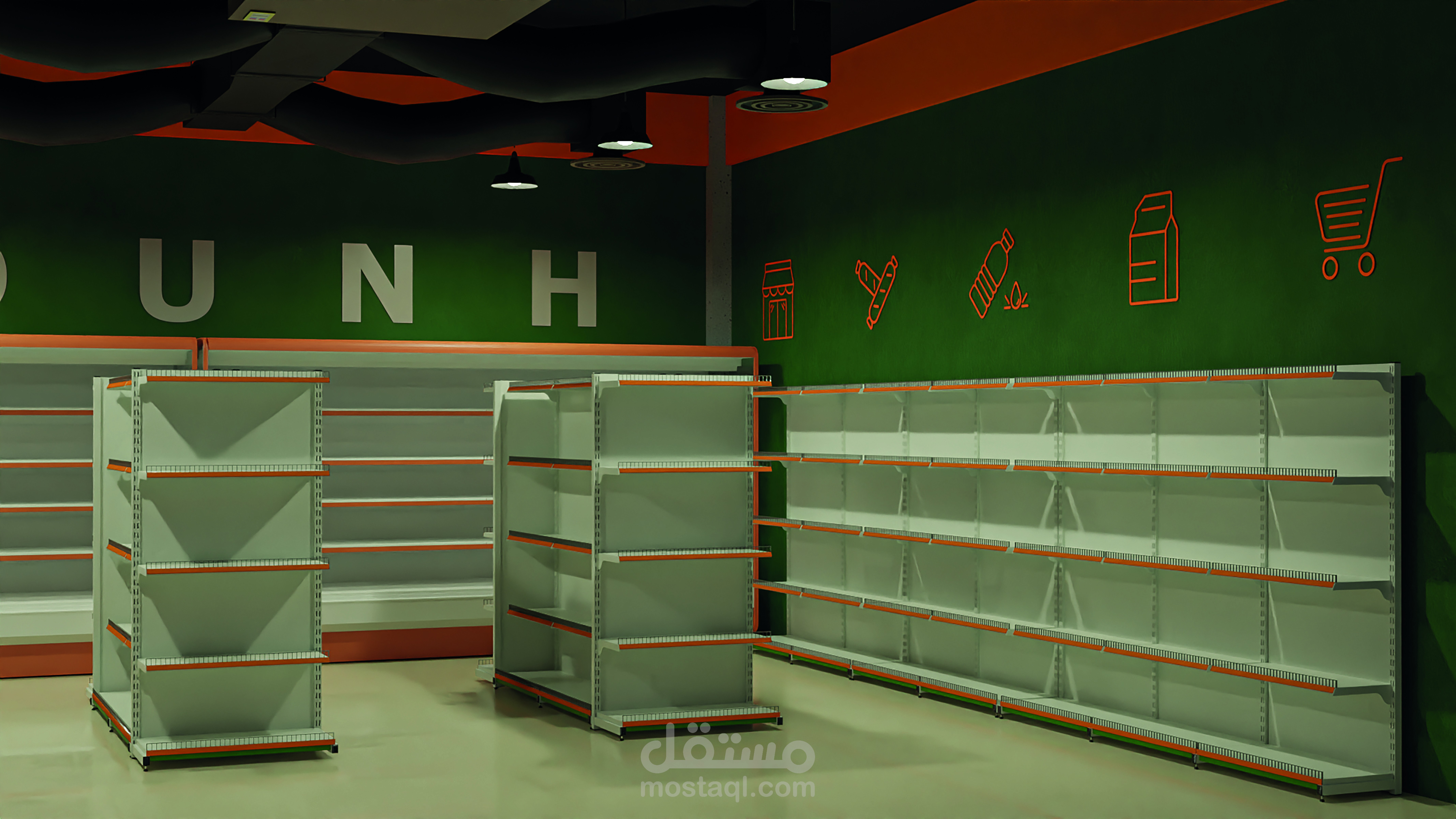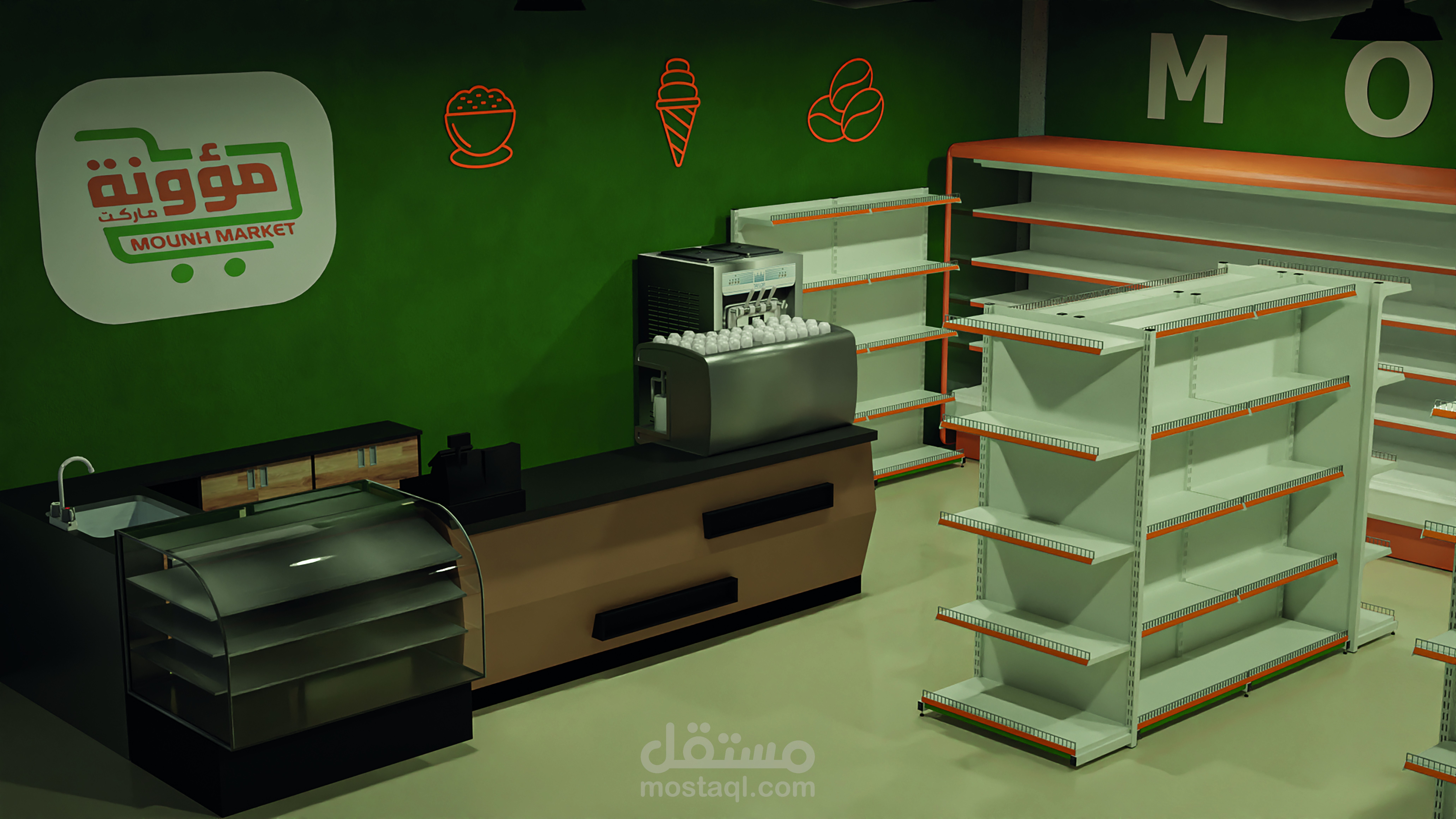 مشروع تصميم ميني ماركت بالكامل خارجي و داخلي حسب طلب العميل وجاري العمل علي تنفيذه