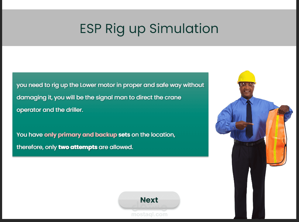 نموذج من اعمال في تطوير ادواة الندريب الافتراضي لتدريب تفاعلي و فعال .