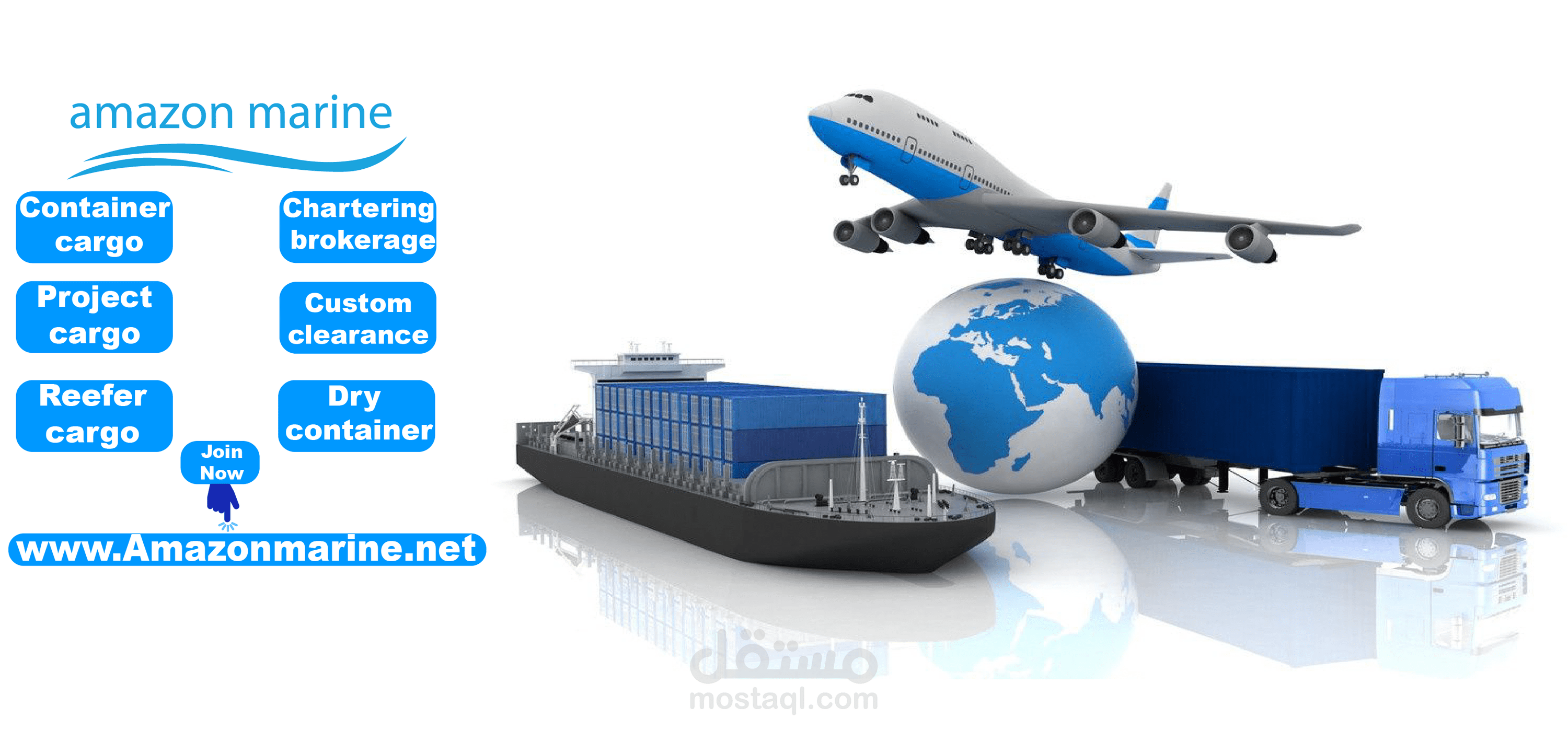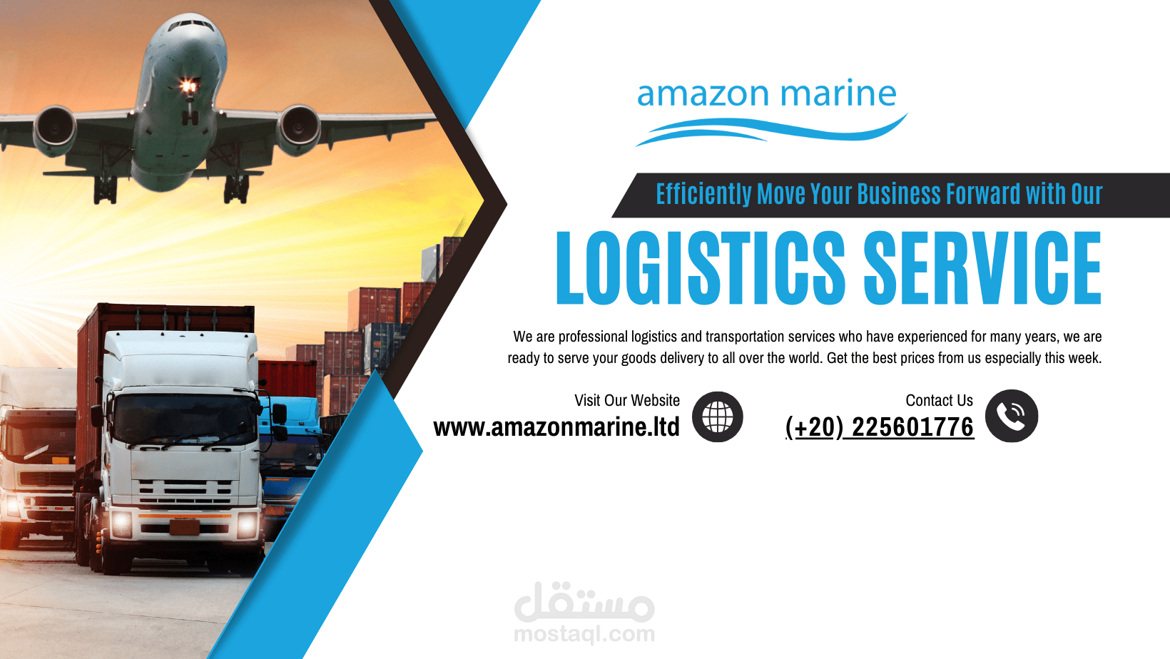Company profile for Amazon marine company -social media posts-facebook cover-business card