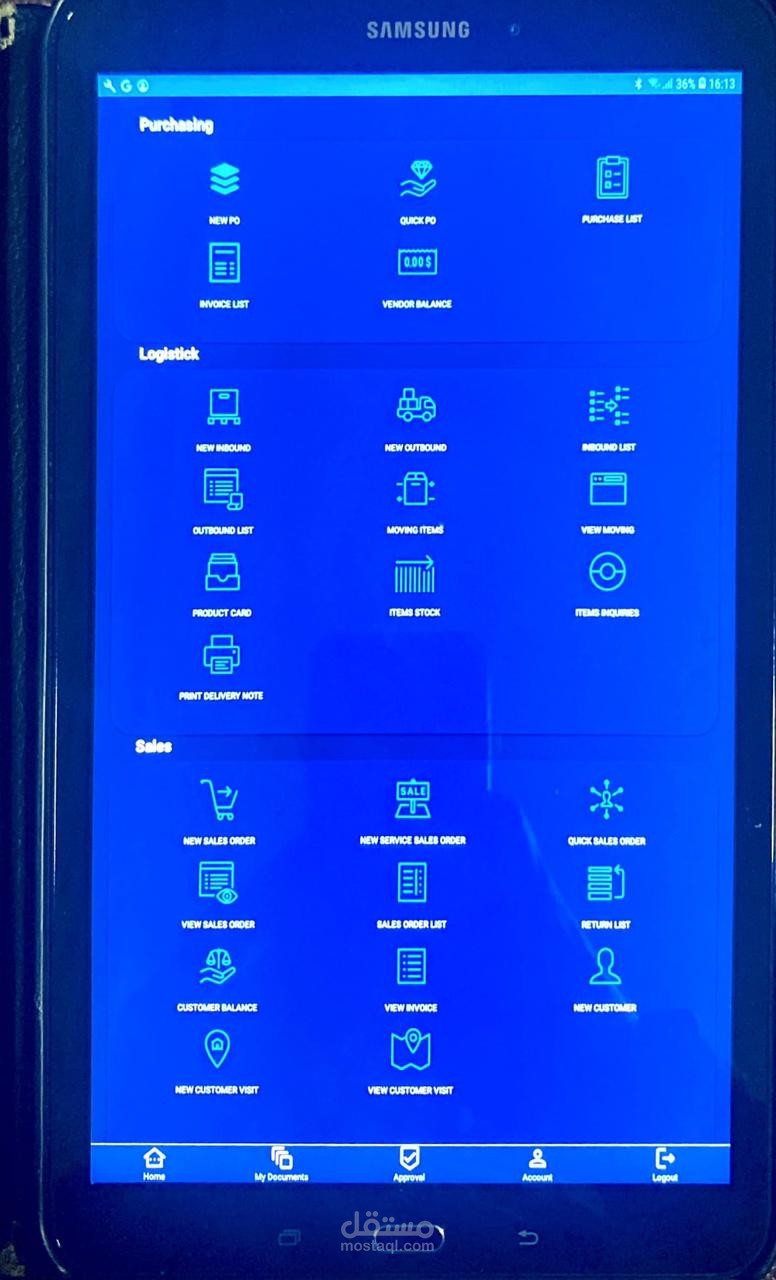 تم عمل موبايل ابليكشن للربط مع نظام ال ERP ويحتوى على الاتى :