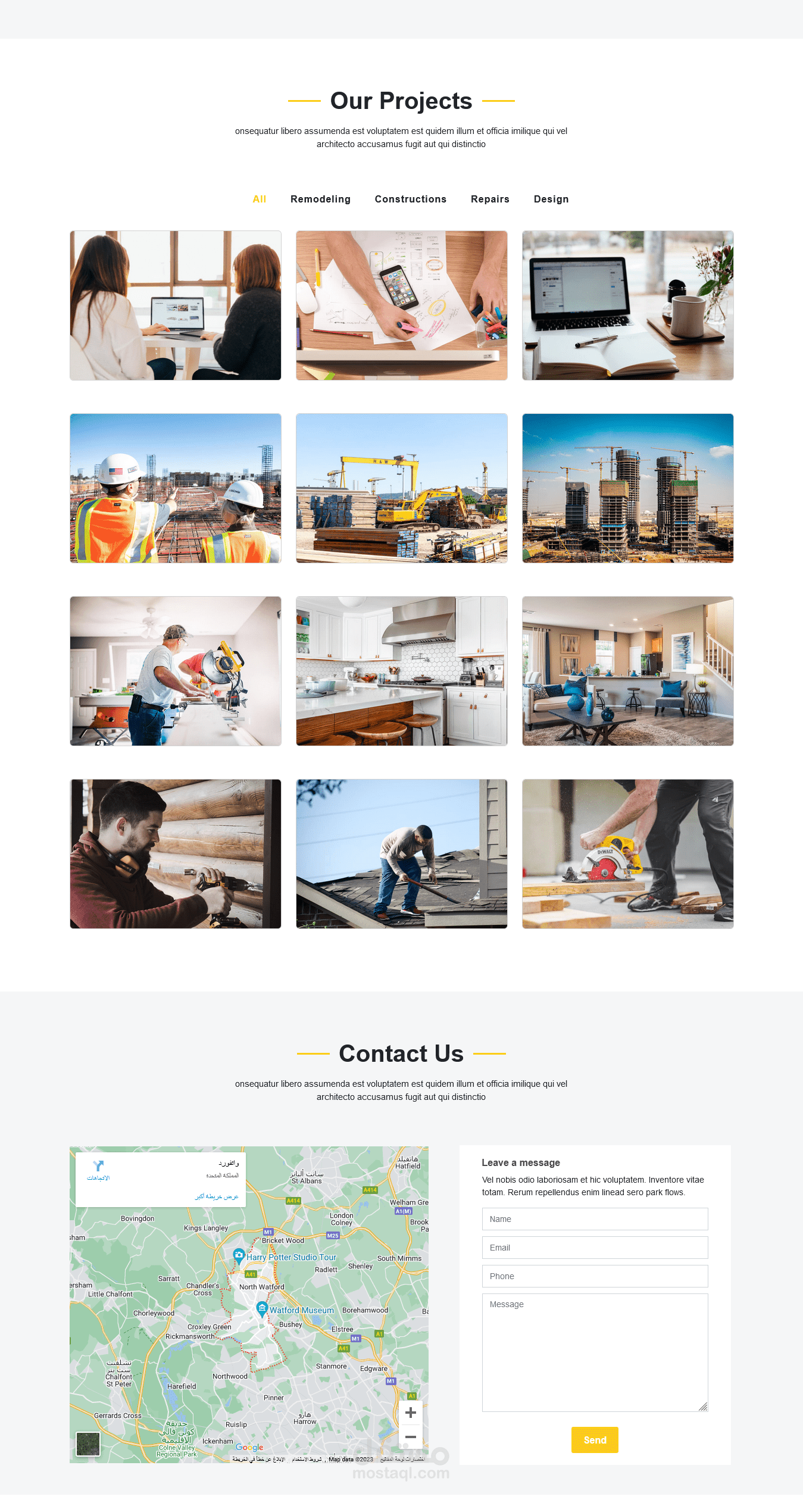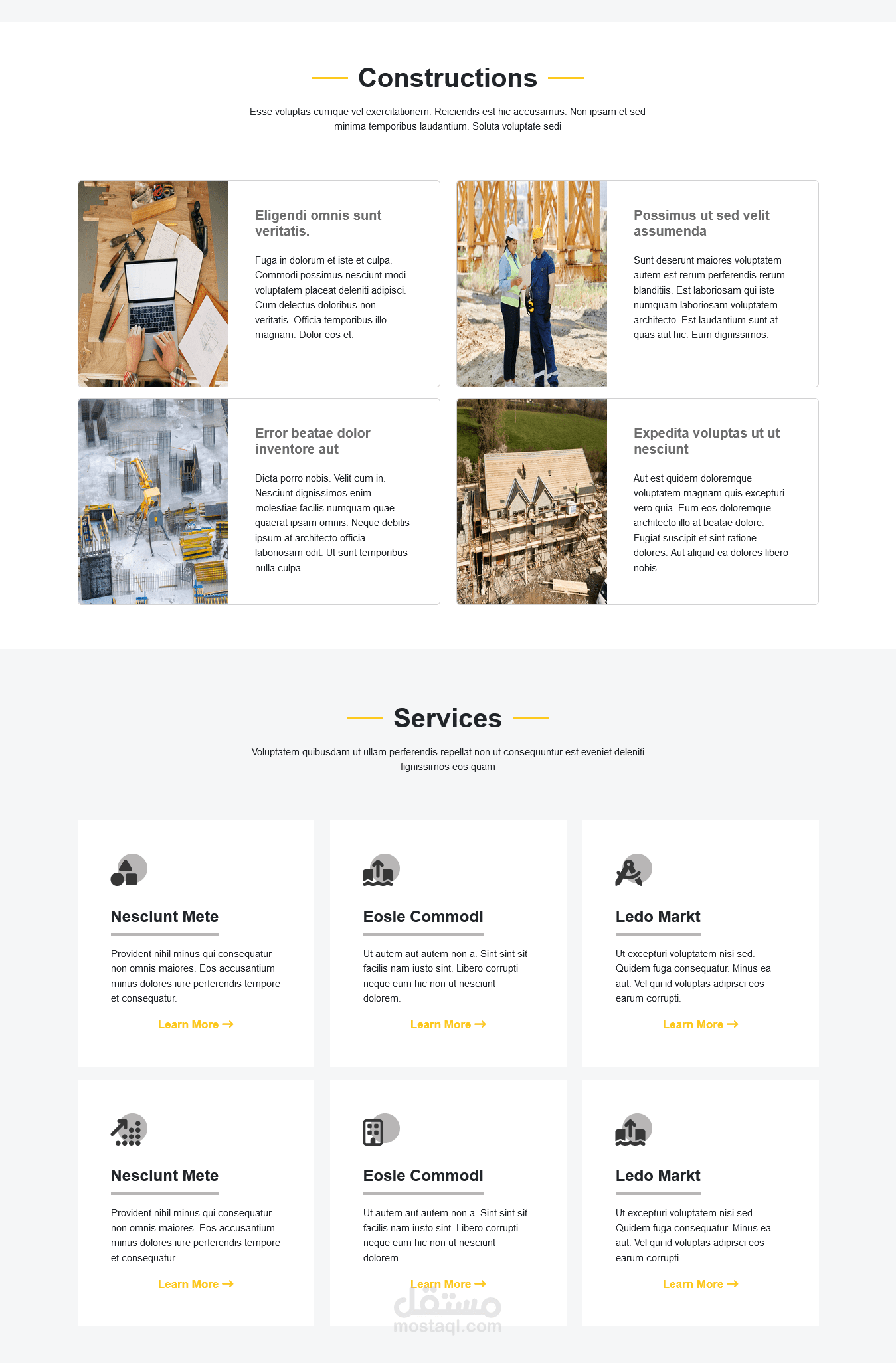 عباره عن تصميم صفحة رئيسية لموقع هندسي باستخدام