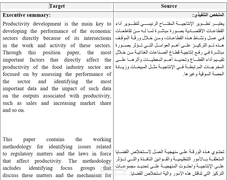 A part of a file translated from Arabic into English and the food sector and the main elements that affect production