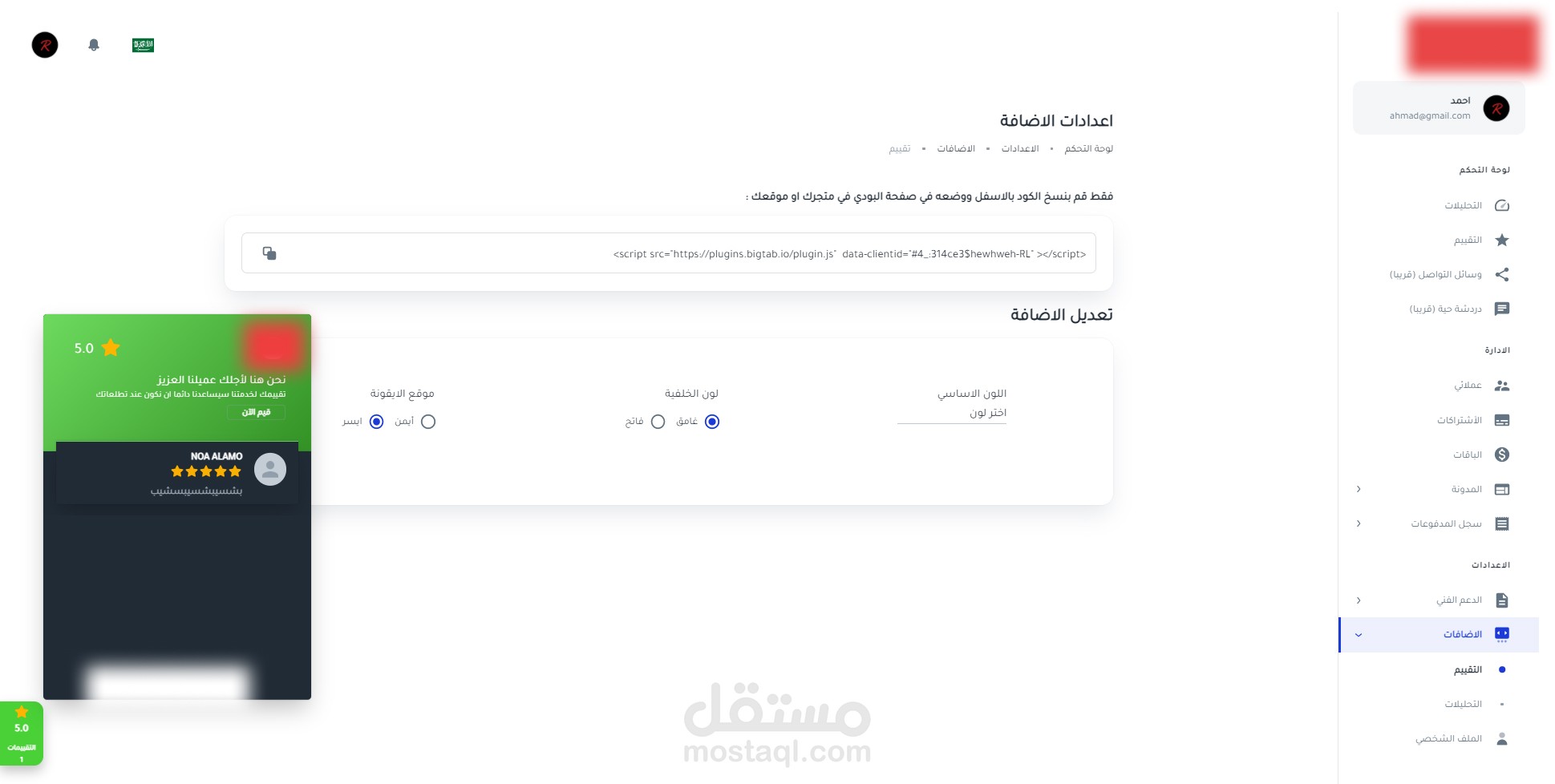 This website has a plugin configuration installed by the script tag on the user site and may contain (chat, rate, etc.), and some features such as controlling the user interface of the plugin, too (dashboard,