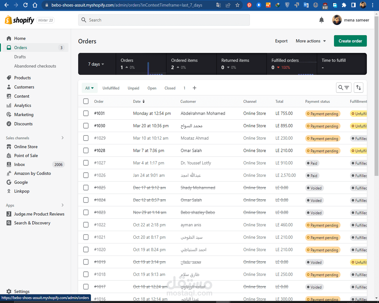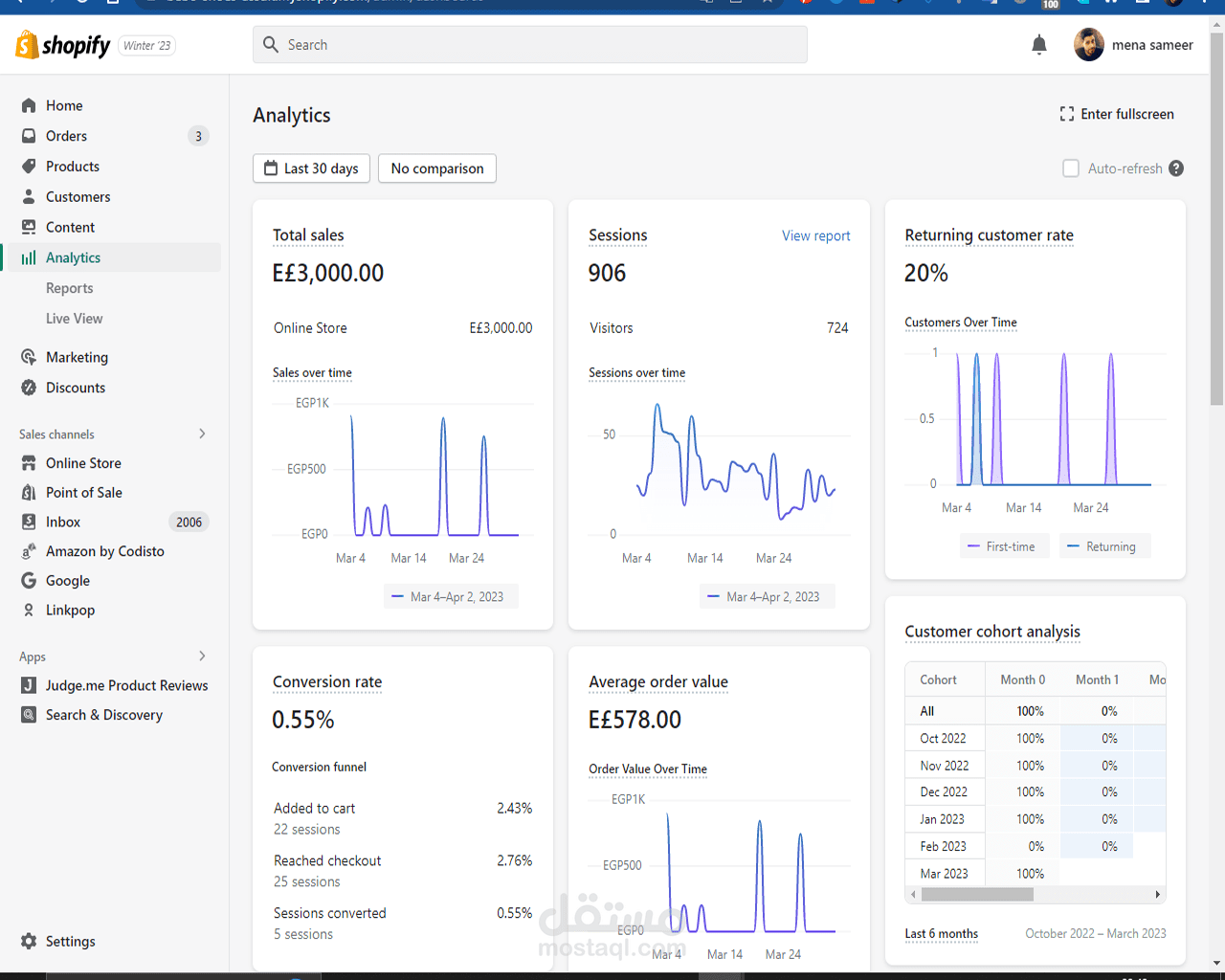 متابعة أداء مبيعات المتجر والوصول للأهداف المالية / الطلبات المطلوبة