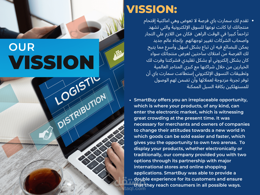 A companyprofile for an e-commerce and logistical services company that was designed to the highest degree of professionalism, combining stunning design as well as realism and displaying the capabilities and advantages of the company for the destination to which it is submitted.