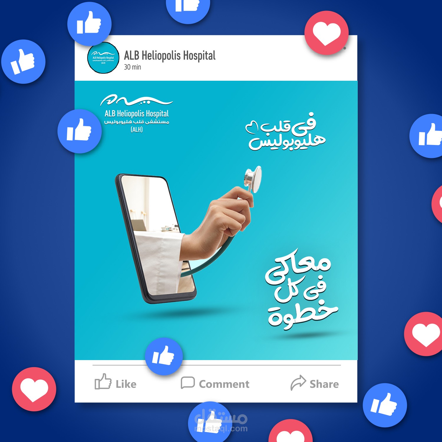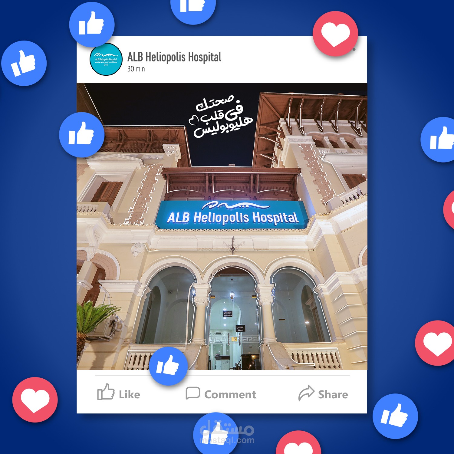 تصميم قوالب و منشورات لصفحات مواقع التواصل الإجتماعى لصالح مستشفى قلب هليوبوليس
