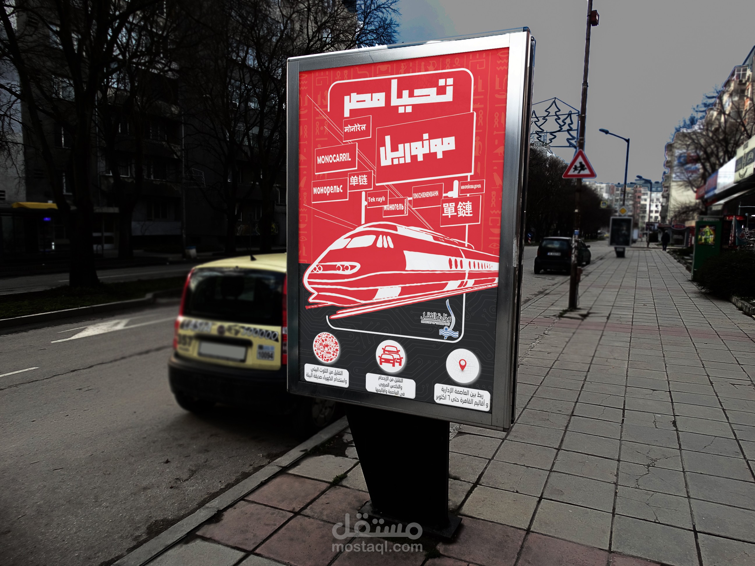 مشروع عن تصاميم خارجية للمونوريل الجديد مونوريل العاصمة باستخدام اكتر من اسلوب تصميمي جرافيكي