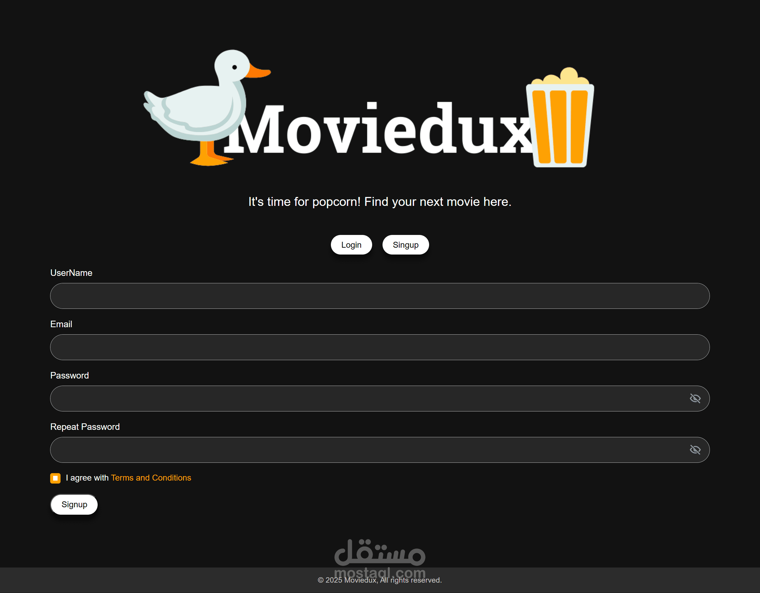Moviedux: تطبيق ويب يعتمد على React.jsيسمح للمستخدمين بتصفح مجموعة من الأفلام وإدارتها بسهولة.